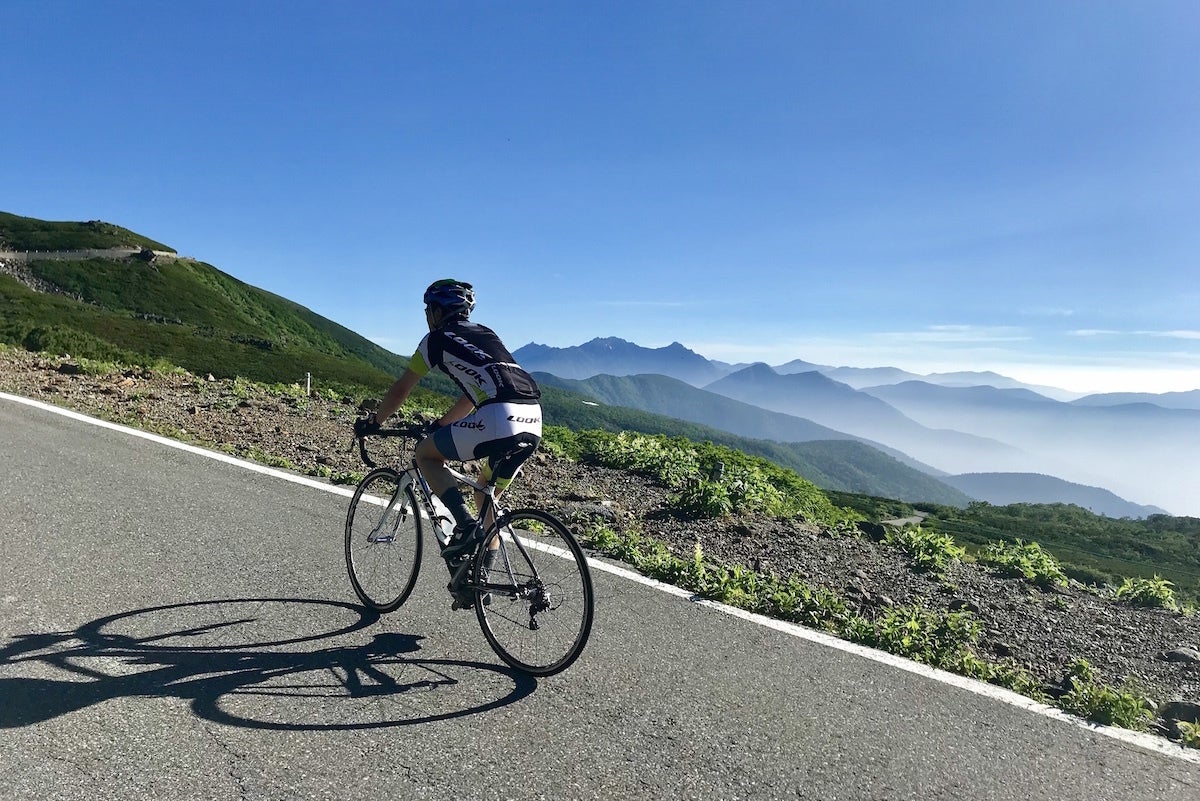 日本一高所の舗装道路 ヒルクライムのメッカ、乗鞍エコーライン2700m付近から見渡す穂高連峰