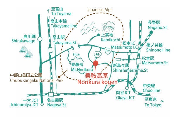 乗鞍高原は長野県松本市、標高1300m〜1500mにあり、中部山岳国立公園の中にあります。標高3026mの日本一登りやすい3000m級の山、百名山の乗鞍岳をはじめとして、美しい自然に囲まれています。