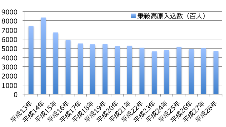 乗鞍高原の入込数の変化(データ:環境省)