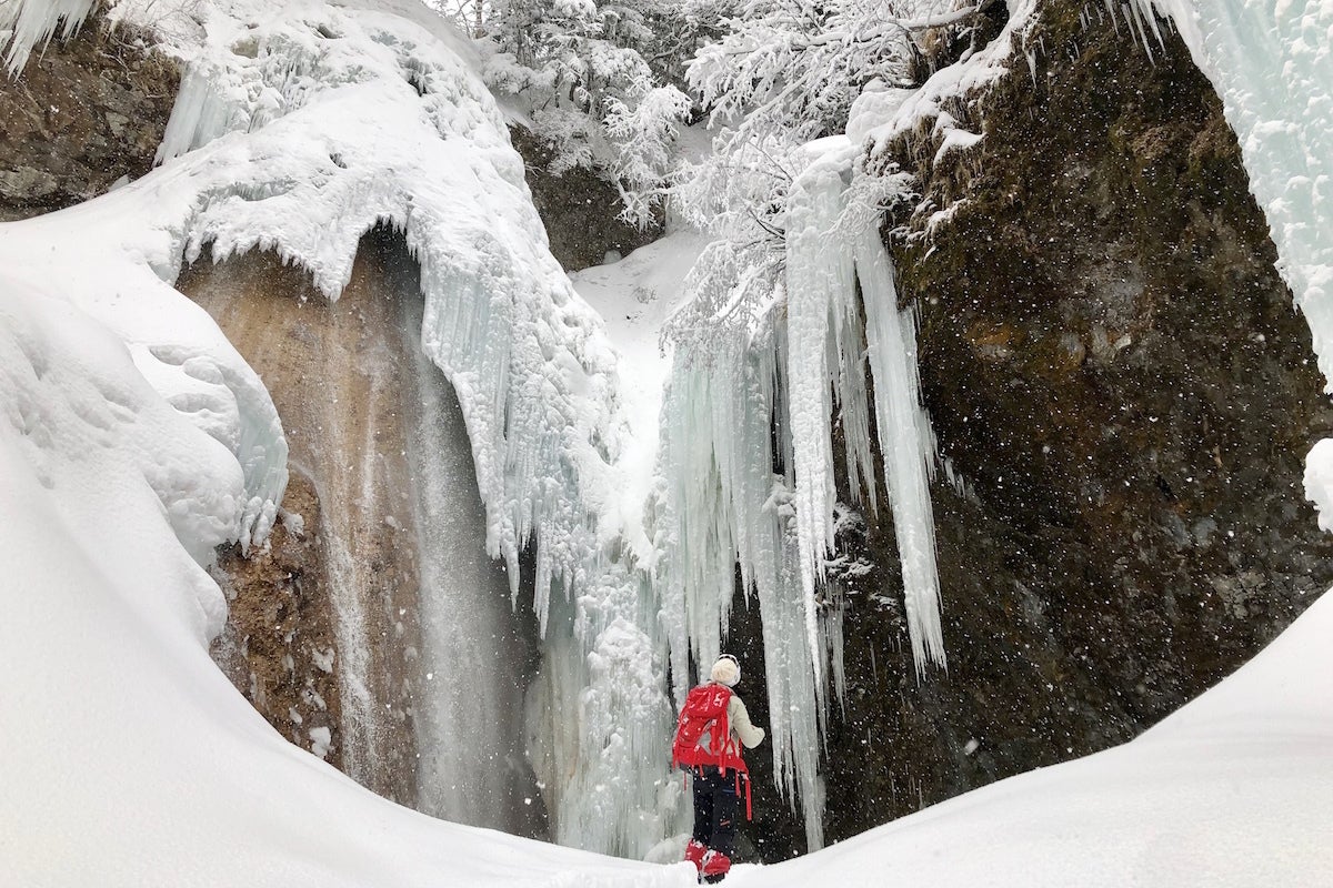 冬の三本滝 ゲストハウス雷鳥のスノーシューツアーで訪れます