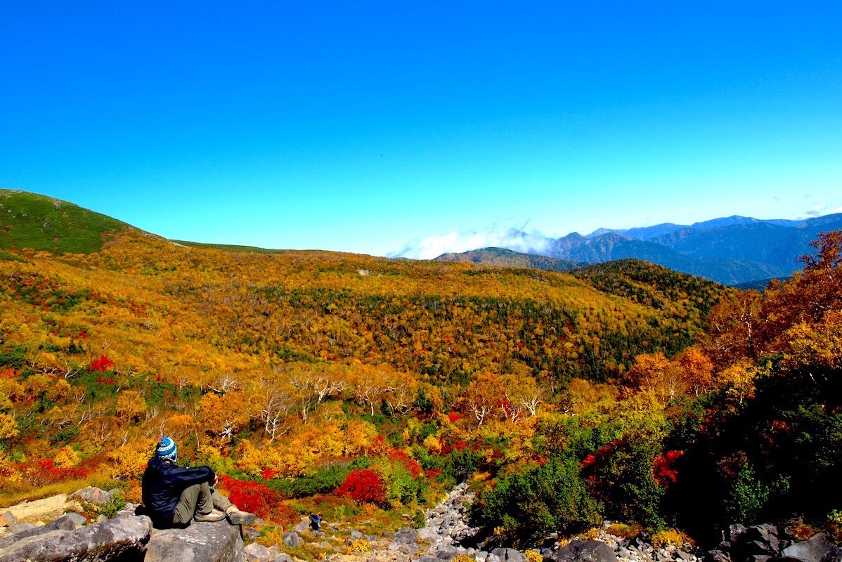 紅葉の乗鞍岳絶景ポイント(宝徳霊神付近の登山道)