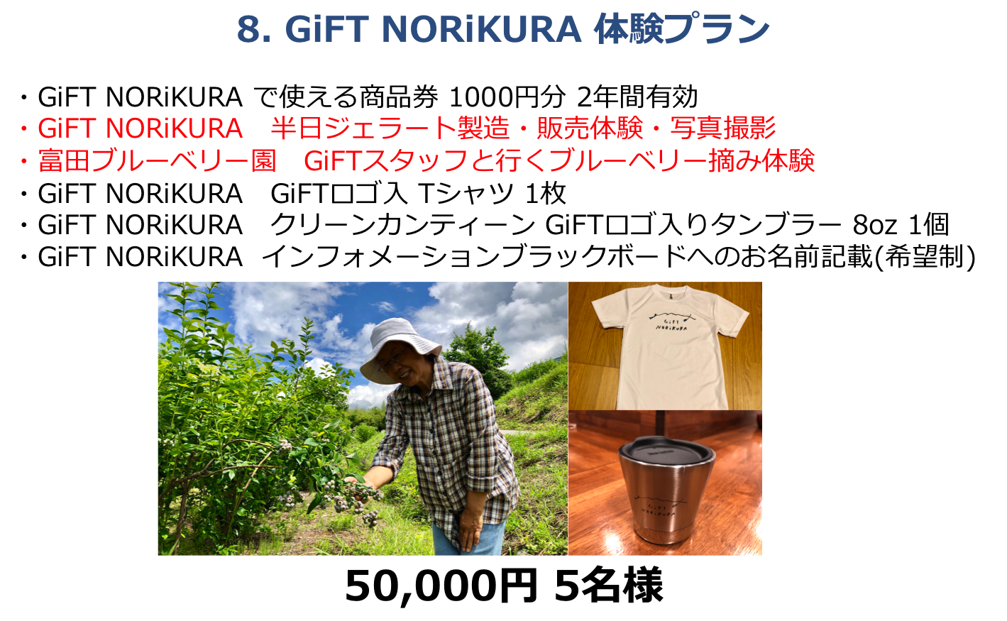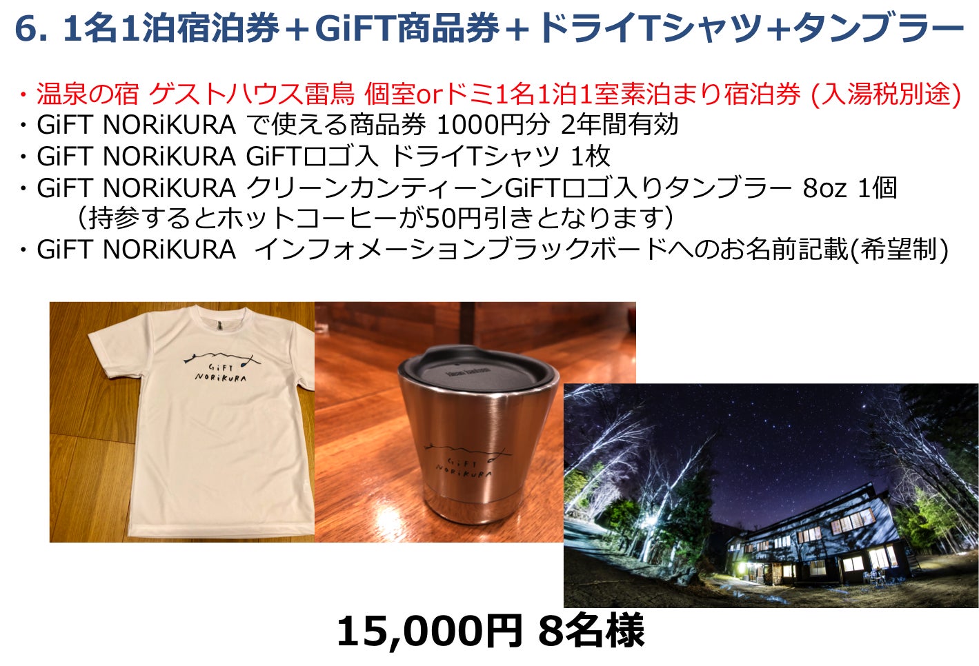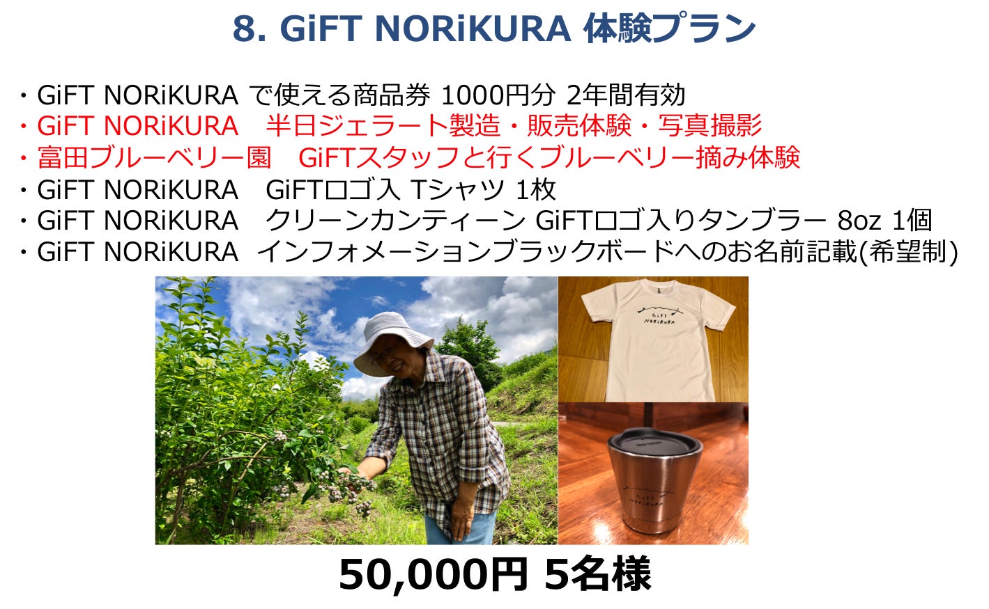 さらに、GiFTの売上の3%は乗鞍高原の環境整備に活用することをコミットします。その資金は、観光協会や行政とも協力しながら、案内板の整備、登山道や散策道の整備、環境維持のための整備活用費に充てたいと思っています。そして来年から年に1回は環境整備のための参加型のイベントを企画したいとも思っています。