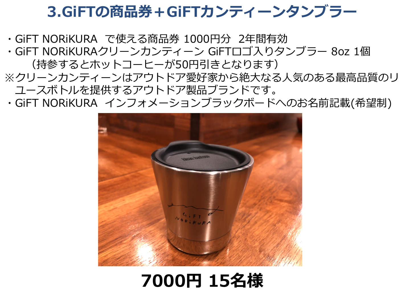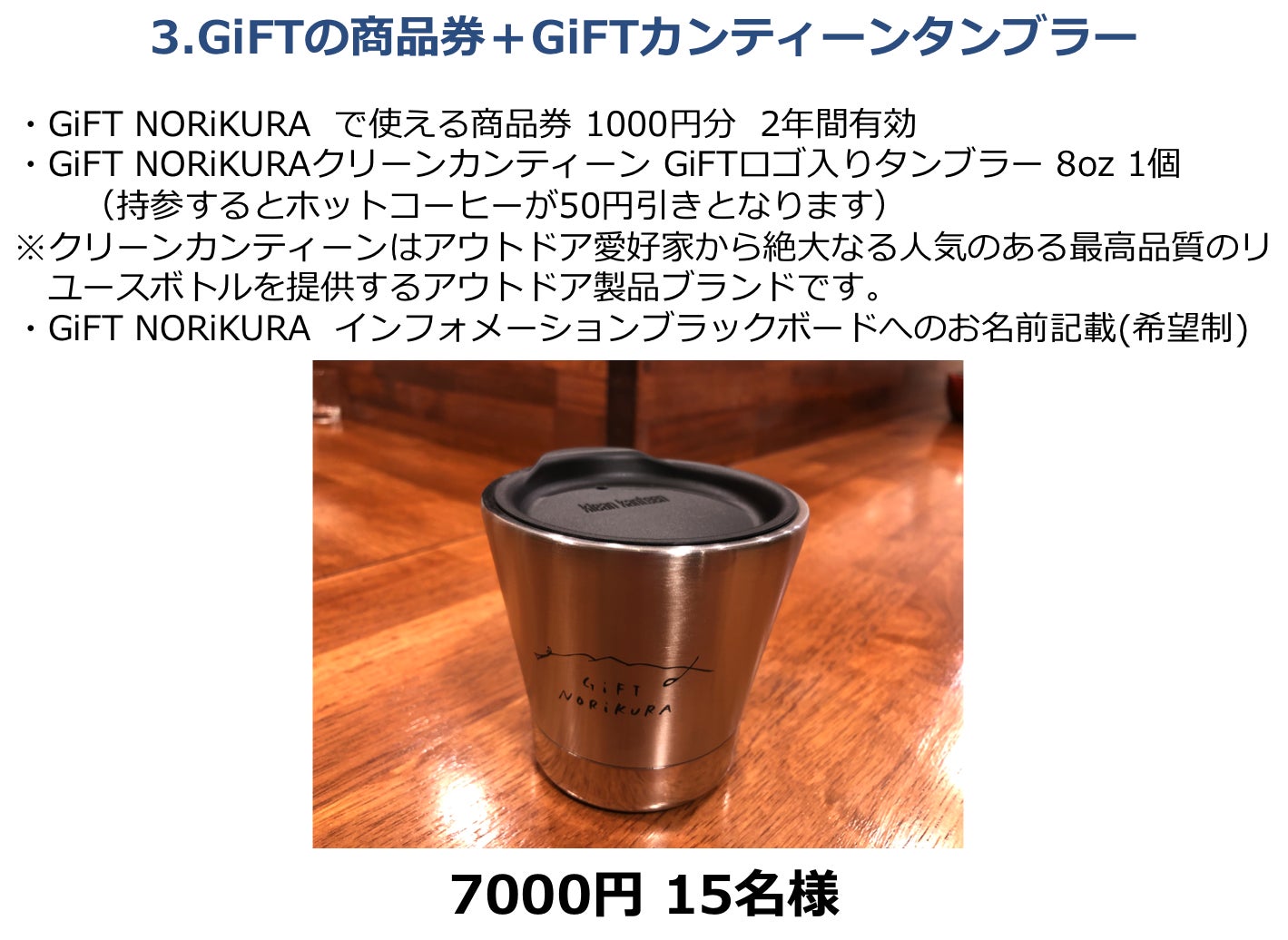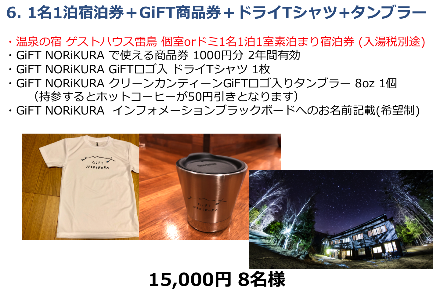 さらに、GiFTの売上の3%は乗鞍高原の環境整備に活用することをコミットします。その資金は、観光協会や行政とも協力しながら、案内板の整備、登山道や散策道の整備、環境維持のための整備活用費に充てたいと思っています。そして来年から年に1回は環境整備のための参加型のイベントを企画したいとも思っています。