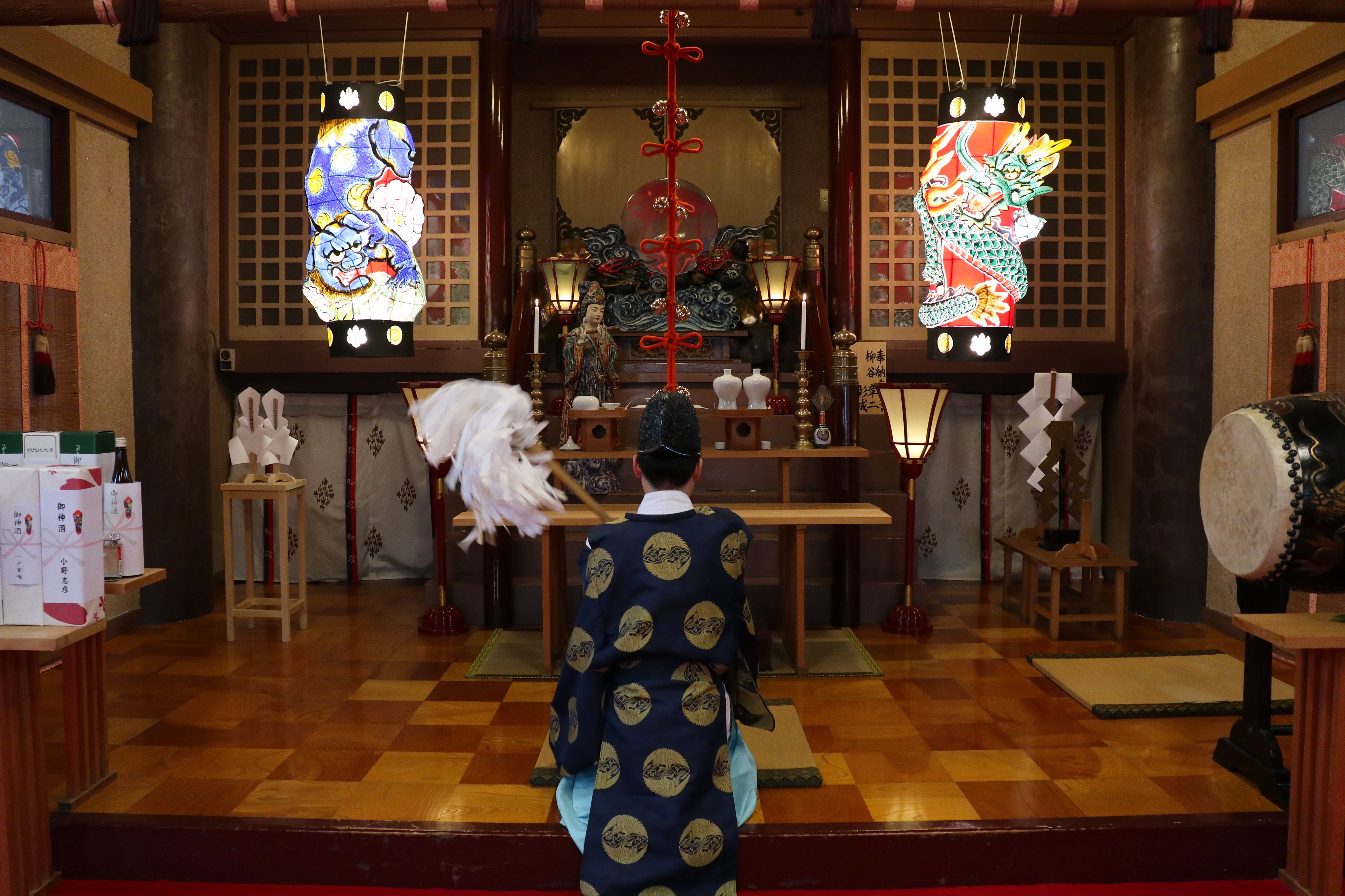 ねぶた提灯は常時点灯していますのでお参りの際にはいつでもご覧いただけます。