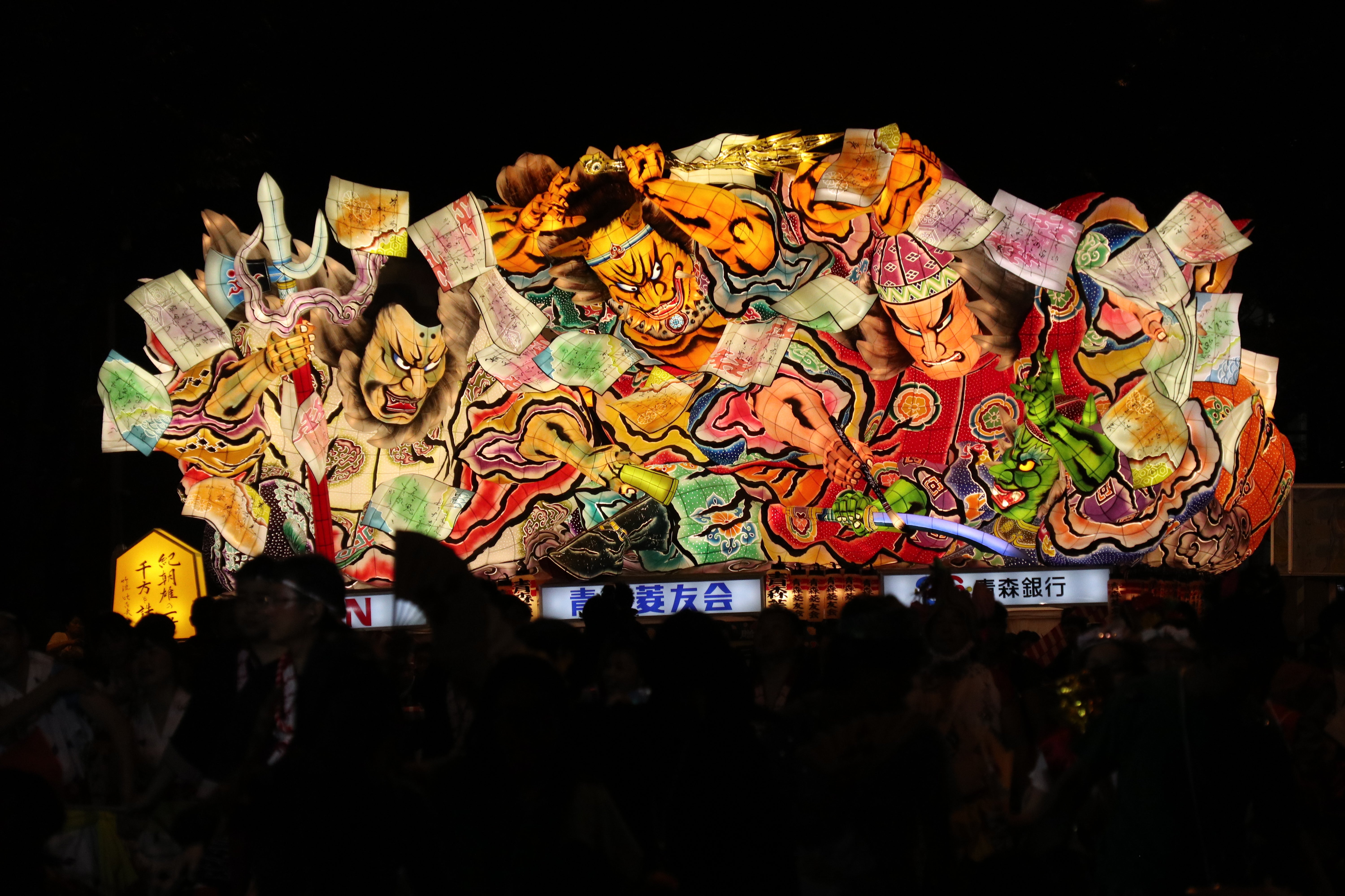 青森ねぶた祭もあっという間に残すところ2日(^^)昨日は審査日ということで、今年のねぶた大賞他、受賞団体が発表されました!!今年の「ねぶた大賞」の栄に浴されたのは・・・総合賞ねぶた大賞青森菱友会 『紀朝雄の一首 千方を誅す(きのともおのいっしゅ ちかたをちゅうす)』 作:竹浪 比呂央※今年のねぶた大賞御朱印団体知事賞あおもり市民ねぶた実行委員会 『神武東征(じんむとうせい)』 作:北村 麻子※昨年のねぶた大賞御朱印団体市長賞JRねぶた実行プロジェクト 『浄焔 日本武尊(じょうえん やまとたけるのみこと)』 作:竹浪 比呂央商工会議所会頭賞NTTグループねぶた 『瓊瓊杵尊と木花咲耶姫(ににぎのみこと と このはなさくやひめ)』 作:北村 春一※神社のねぶた提灯制作者観光コンベンション協会会長賞に組・東芝 『羅城門(らじょうもん)』 作:北村 隆部門賞運行・跳人賞あおもり市民ねぶた実行委員会※昨年のねぶた大賞御朱印団体囃子賞日立連合ねぶた委員会※必勝祈願運行安全祈願斎行制作者の部最優秀制作者賞竹浪 比呂央 『紀の朝雄の一首 千方を誅す(きのともおのいっしゅ ちかたをちゅうす)』 (青森菱友会)※今年のねぶた大賞御朱印団体優秀制作者賞北村 麻子 『神武東征(じんむとうせい)』 (あおもり市民ねぶた実行委員会)※昨年のねぶた大賞御朱印団体優秀制作者賞北村 春一 『瓊瓊杵尊と木花咲耶姫(ににぎのみこと と このはなさくやひめ)』 (NTTグループねぶた) ※神社のねぶた提灯制作者~~~~~~~~~~~~~~~~~~~~~~~~~~~~~~~~~~~~~なんと、今年ねぶた大賞御朱印となった、昨年ねぶた大賞を受賞された青森菱友会さん、ねぶた師 竹浪比呂央先生のねぶたとなりました\(^o^)/二年連続のねぶた大賞受賞という快挙でした!!おめでとうございます!!!もちろん他の賞を受賞された団体も、逃してしまった団体もそれぞれに個性があり、そして何よりもねぶたに掛ける想い大変素晴らしいもので、私にとってはどこも甲乙つけ難いものばかりでした。今日は審査も終わり、夜間最終日ということで、思う存分楽しんでいただきたいと思います♬皆様、おめでとうございましたー!!
