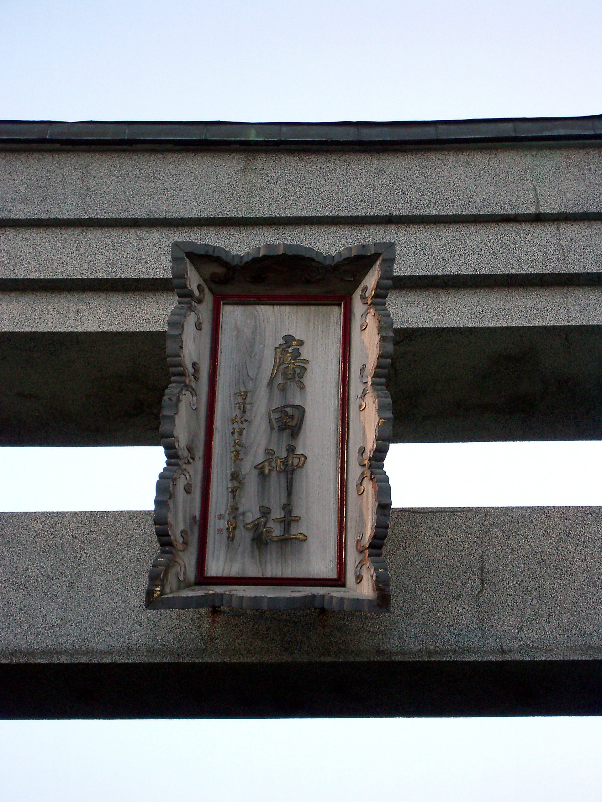 金魚ねぶたを掲げる廣田神社の鳥居のお話しです(^^)神社の鳥居には神社名が掛かれた額が奉納されていることが多いのですが、廣田神社の社号額はどなたが揮毫されたか御存知ですか???その前にひとつ経緯を。廣田神社は青森大空襲によって灰燼に帰した際、都市計画の一環で境内が二分され、現在のような道路を挟んで本社と末社とで分かれてしまいました。実はこの道路がもともと神社の表参道で、この上に社殿と鳥居が一直線に並んでいたそうです。一刻も早い復興を願う市民の心の拠り所として建てられた鳥居は長く持つものではなく、数十年の時を経て念願の鳥居を建設することとなりました。その際、本来の境内地であった表参道に建設するよう進めていたそうですが、市道となってしまったその道路をまたいての建設許可が下りず断念してしまいました。しかし、氏子崇敬者の想いは篤く、それであれば県都に相応しく永久に誇りを持って掲げることが出来るお方の揮毫をと思案したところ、当神社に篤い崇敬を寄せていた敬神会会員である、元厚生大臣の津島雄二先生が発案し、当時の内閣総理大臣であった第68・69代内閣総理大臣の大平正芳氏に揮毫頂くことになりました。当時、現役の総理大臣であり、国内はもちろん海外へと公務多忙の中、アメリカ、マニラ等より帰国されたばかりの合間を縫って、数々の長官を歴任された田沢吉郎先生の応援もあり、実現することとなりました。大平正芳元総理大臣は、廣田神社の為なれば、そして、青森県の繁栄の為なればと、ご快諾されたそうで、すぐさま当神社の例大祭である6月19、20日に合わせて直筆の社名の掛け軸が到着しました。その総理大臣のご配慮に、大鳥居が竣工した例大祭は稀に見る参拝者の方で境内は溢れていたそうです。それから約一年後、数々の功績を残しながらも、志半ばで大平正芳氏は急死し、齢70歳にてその生涯を閉じてしまいました。実は、大平正芳元総理大臣は敬虔なクリスチャンであり、地元の香川県で洗礼も受けられていたそうです。ですが、「日本国」の繁栄隆昌を常に願い政務を執り行ったその心は、日本の文化、伝統、また宗教に至るまで篤い想いを寄せられていたそうです。この大鳥居は、そうした青森県の繁栄を願う多くの方々の篤志で建設されたものであり、その想いは現役の総理大臣の心を動かす程の敬神深いものだったということです。そのような大鳥居に掲げられる金魚ねぶたの煌々とした灯りを以て、数十年の時を経ても尚、朽ちることなく直立する、青森の繁栄を願う大鳥居だということを多くの人に知ってもらいたいと思います。