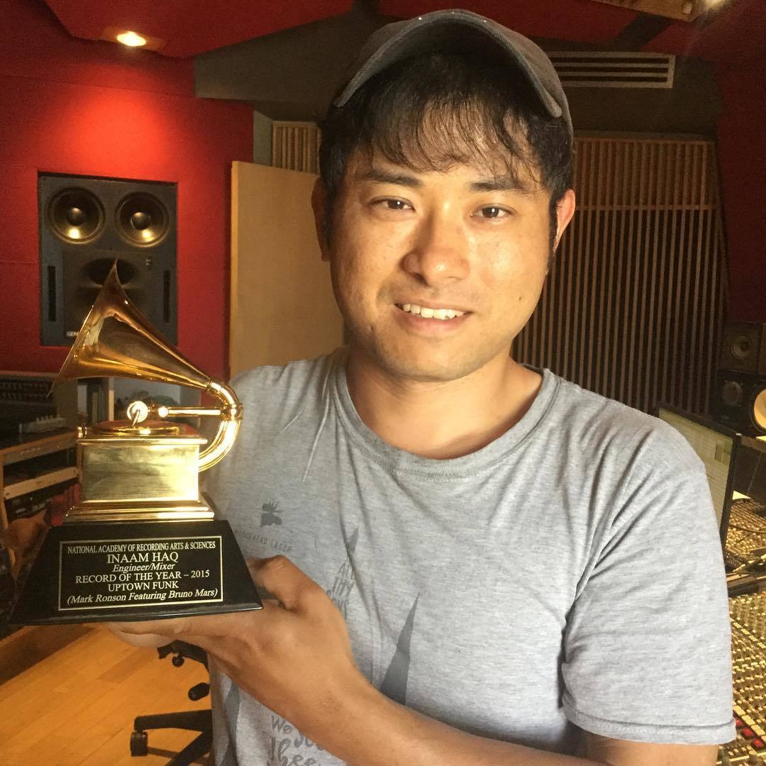 写真のトロフィーにも刻まれているとおり近年最大のヒット曲を手掛け、グラミー賞を受賞しました。それも主要部門であり、まだ日本人は受賞したことの無い「Record Of The Year」です。その他にもヒットチャートの上位にランクインする世界トップのアーティストとも仕事しているまさに世界トップクラスのエンジニアです。彼とは2nd、3rdですでにmixingとマスタリングをしてもらっています。