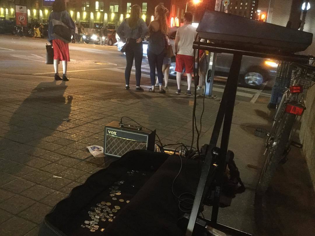 個人での路上ライブの他にバンドを組んでキーボードを演奏したりしていました。