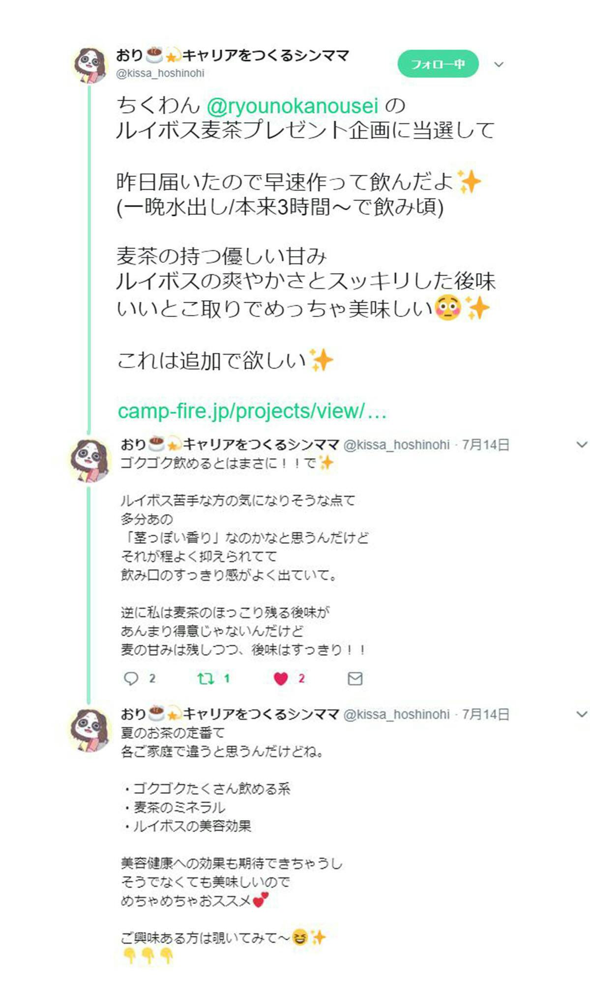 さらに、ブログに実際に飲んだ感想をまとめて下さる方まで!