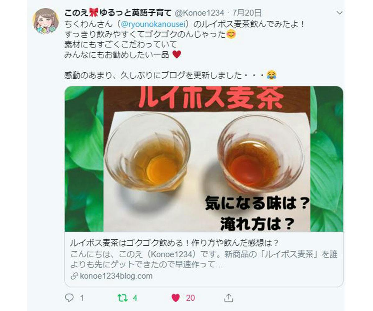 ルイボスティーだけでの水出しとの比較などもして下さっていて、とても分かりやすくまとめてくださいました。