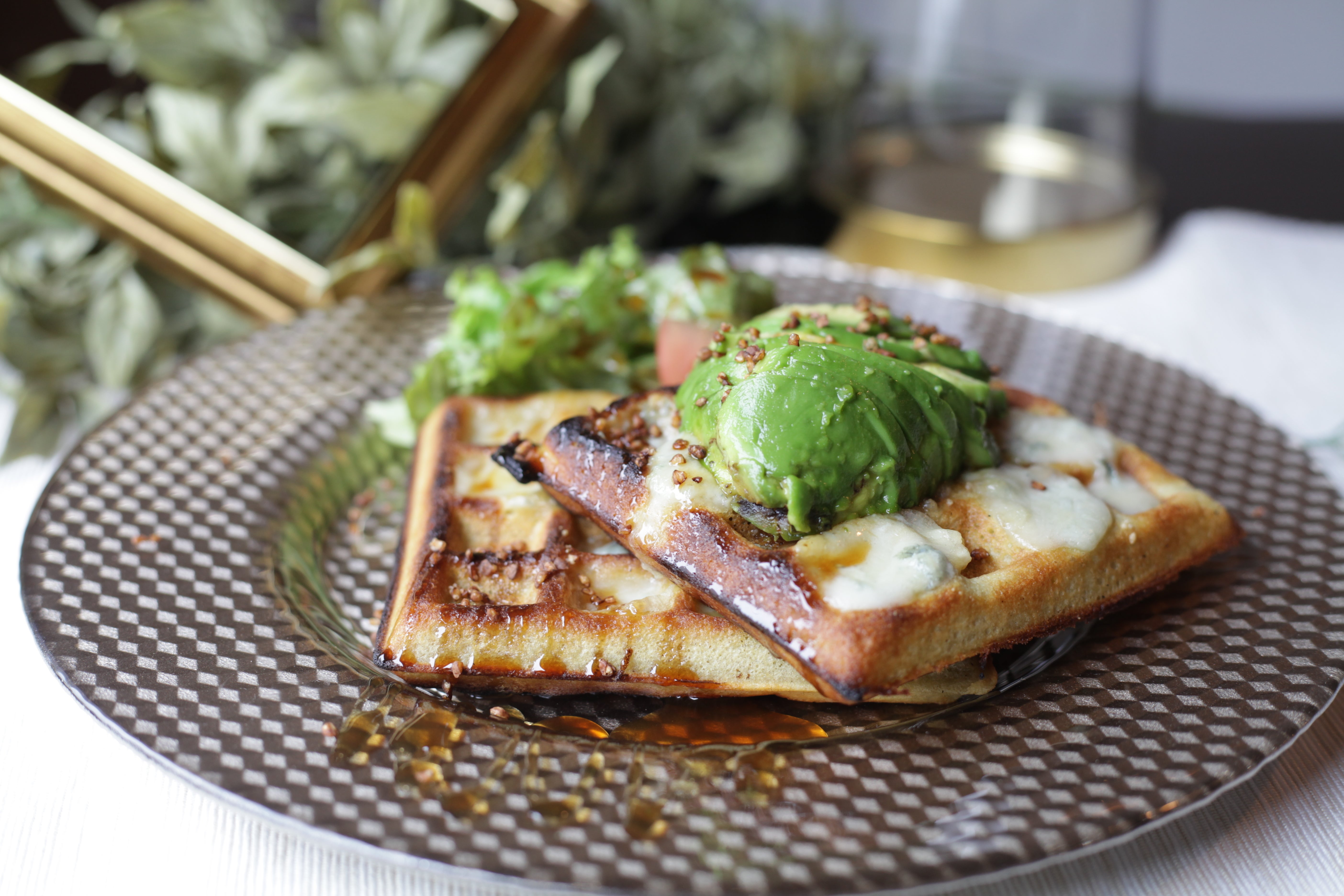 そばの花の蜂蜜とアボカド、ゴルゴンゾーラチーズのワッフル
