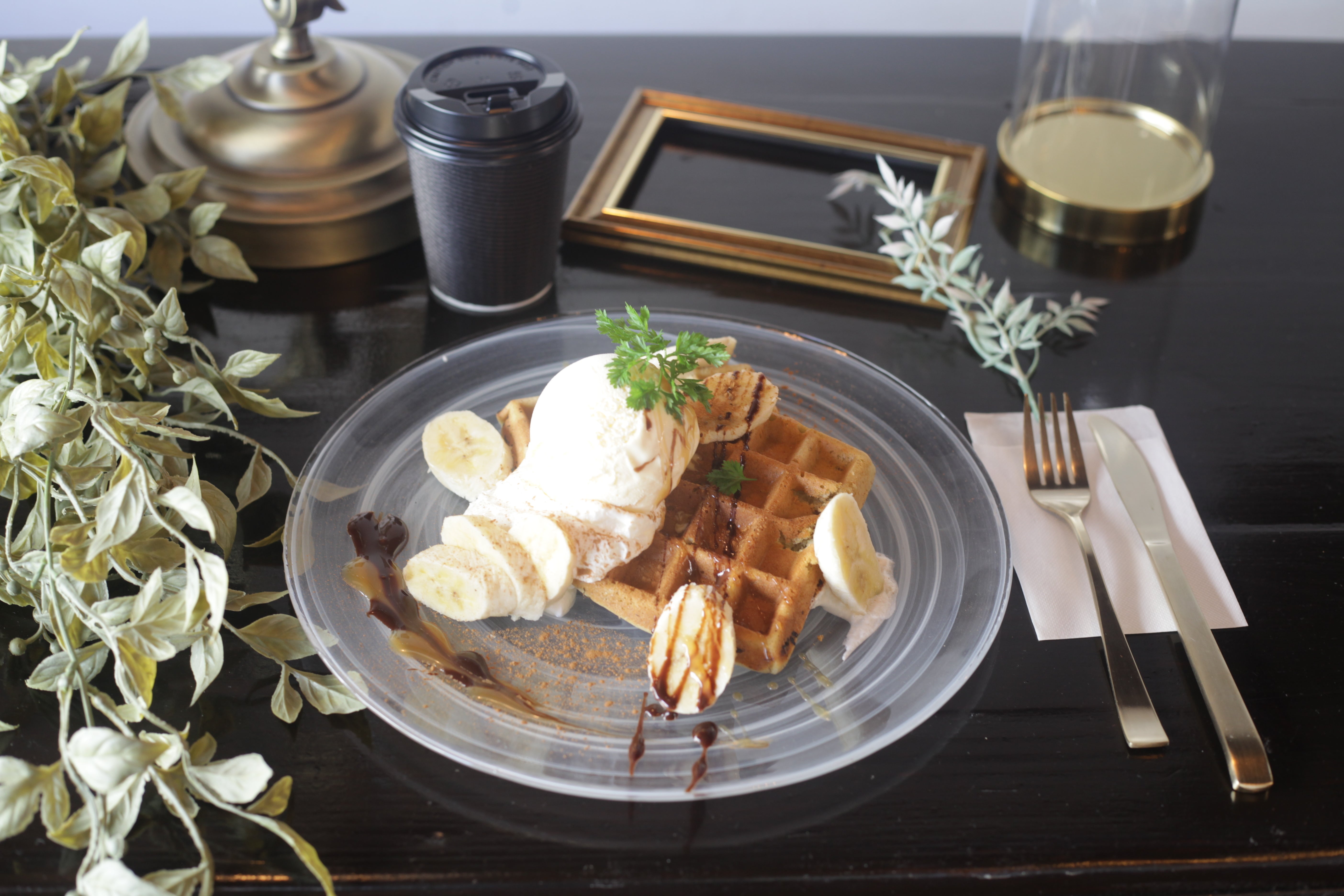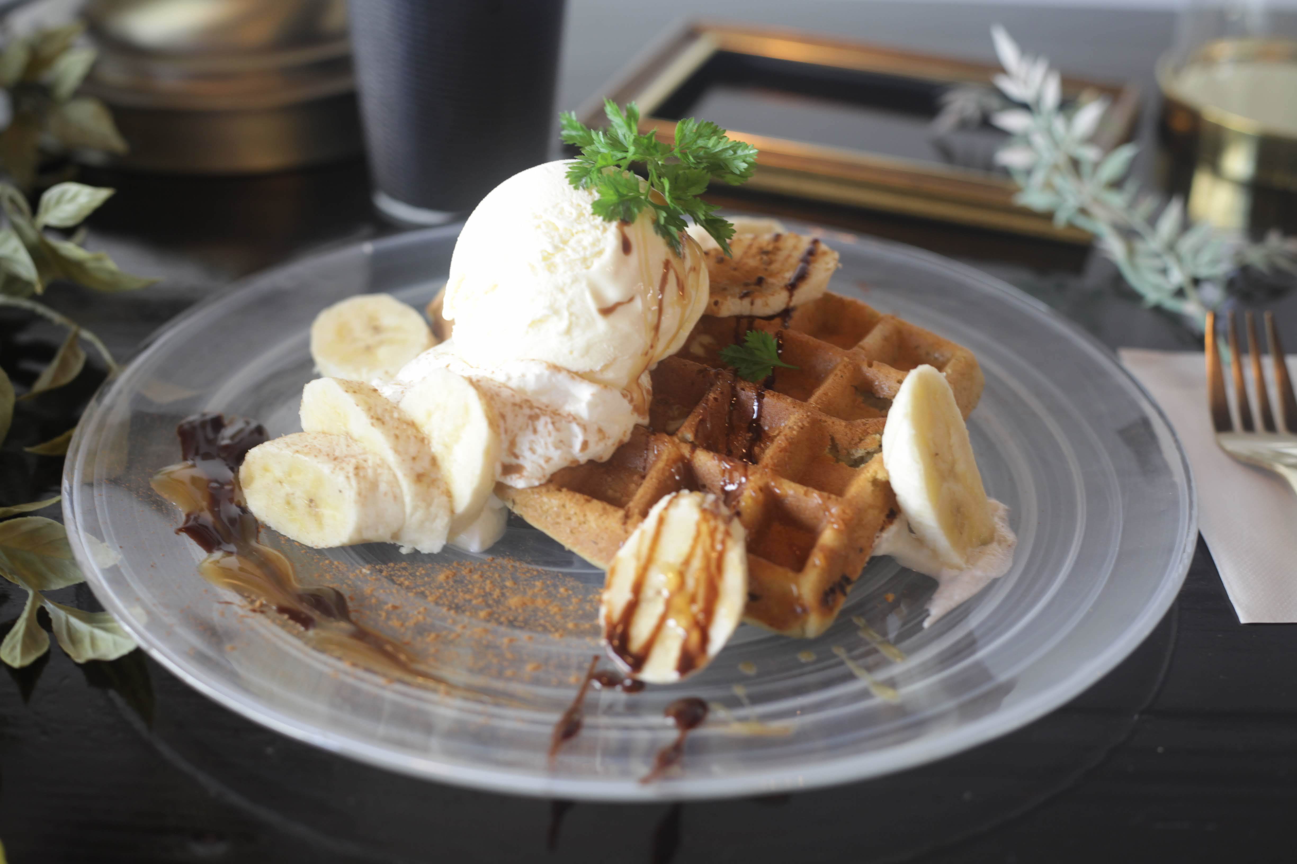 定番:チョコバナナとバニラアイスのワッフル