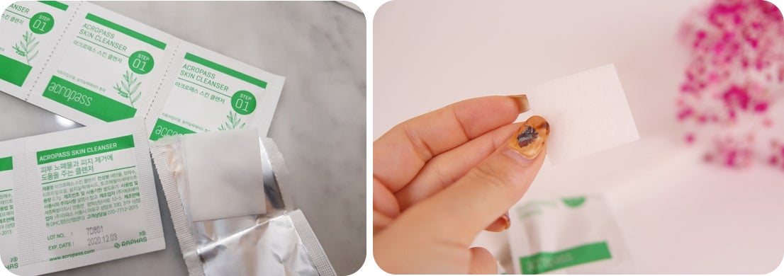 1.洗顔後、スキンクレンザーでお顔の悩み部位を綺麗に拭き取ってください。