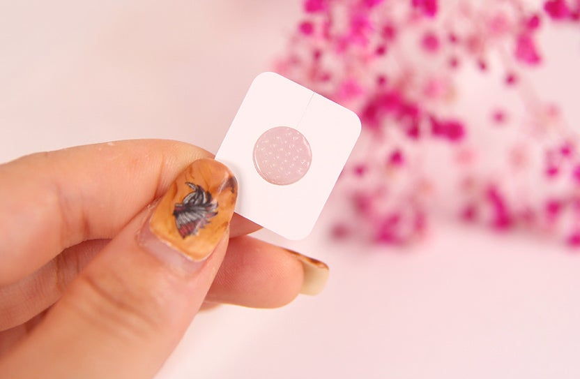 2. STEP02のNightcare用のパッチ中央の突起にふれないように注意して保護フィルムを剥がします。