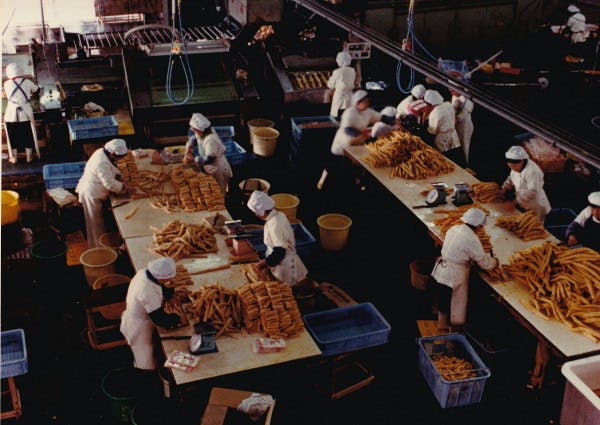 昭和の40~50年頃の漬物工場(資料写真提供 道本食品様)