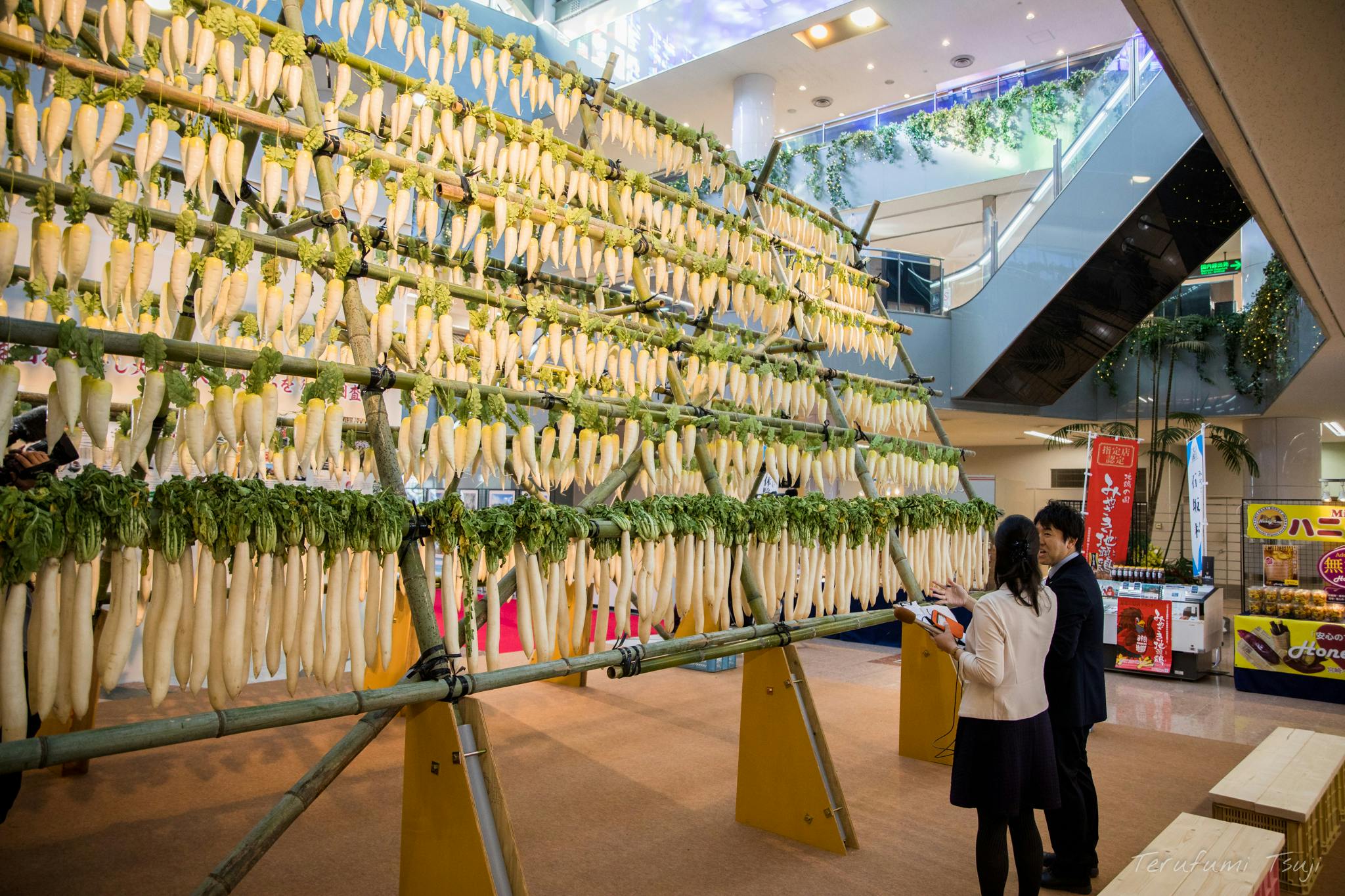 ブーゲンビリア空港(宮崎空港)で展示された大根やぐらの様子