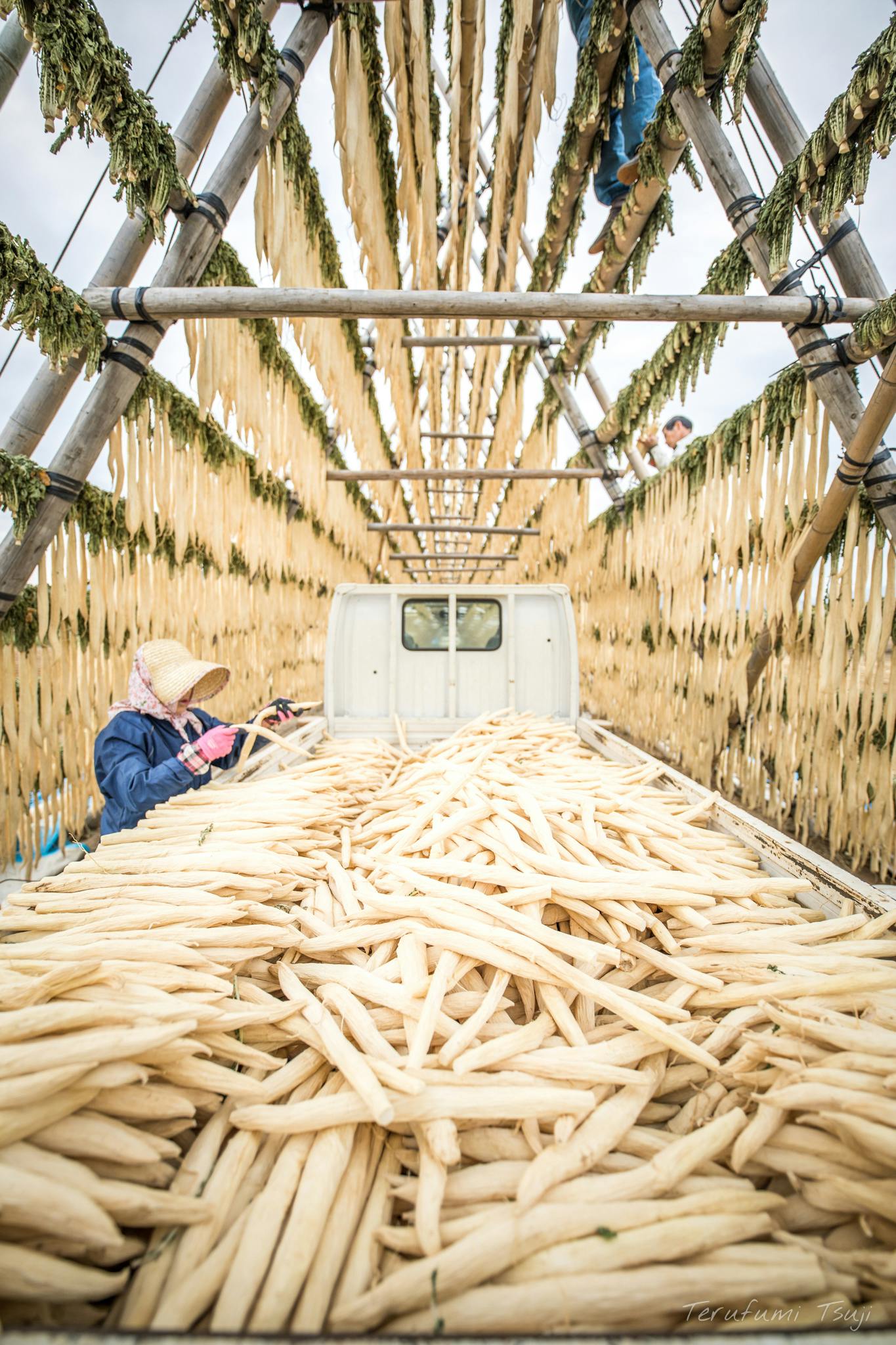 収穫された大量の干し大根