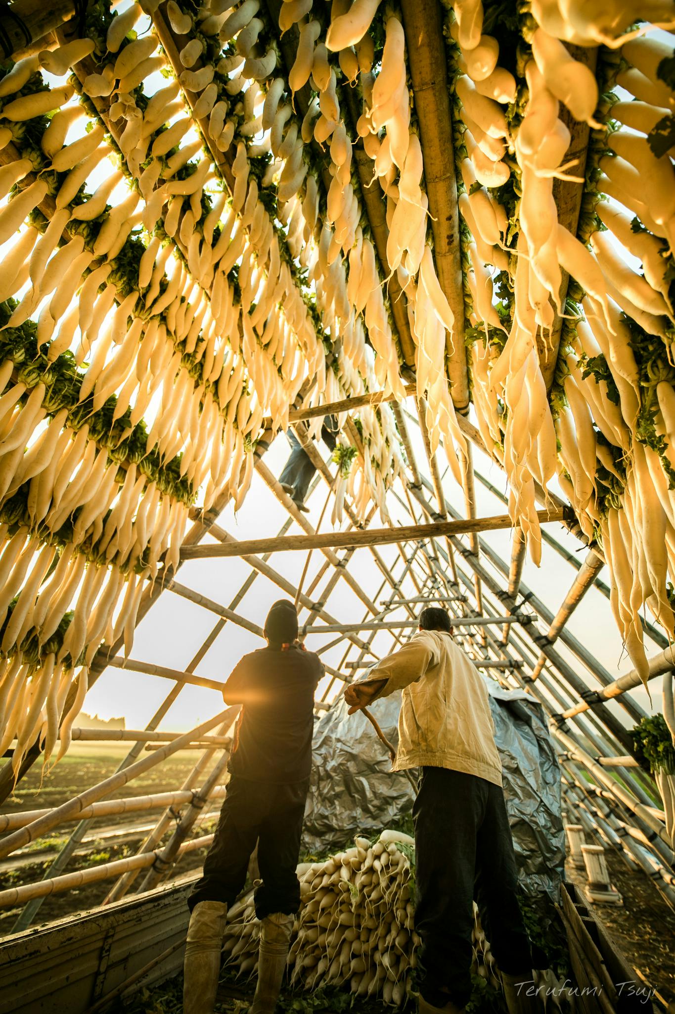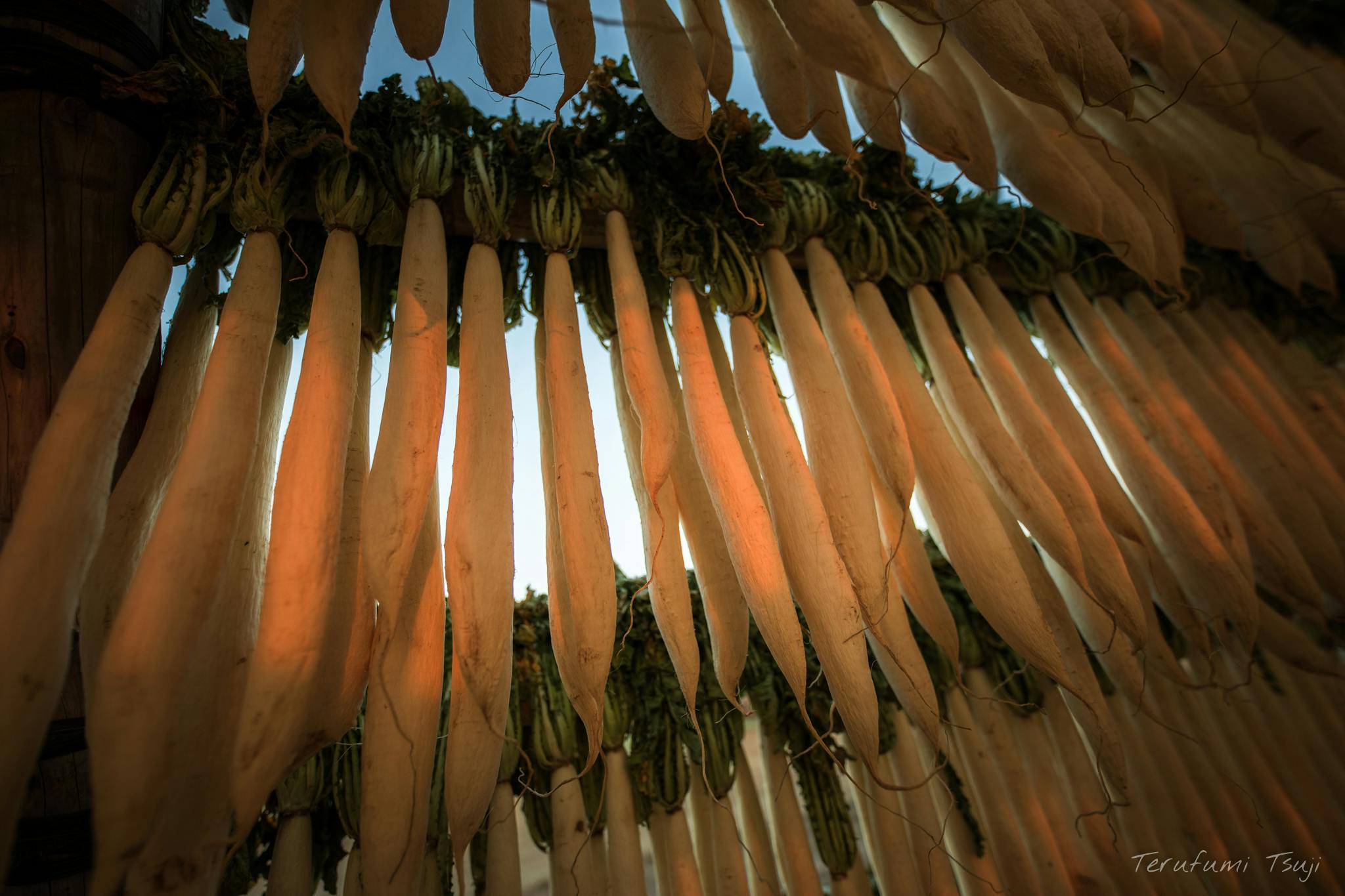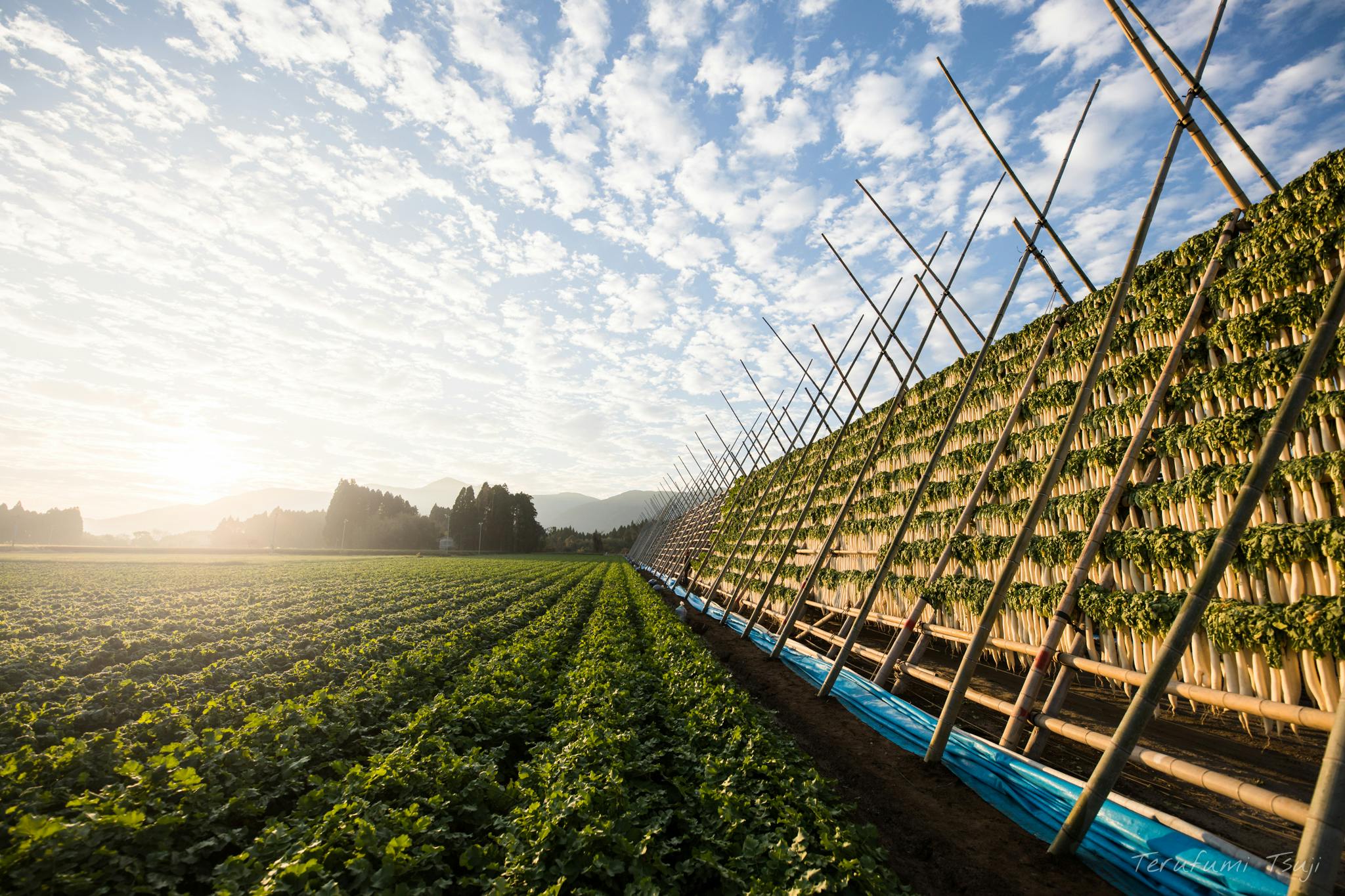 宮崎県宮崎市出身でカメラマン・デザイナーをしながら、風景や動物の写真を撮影する写真家をやっています、辻 晃史(49)です。長年趣味で高校生のときから写真撮影を楽しんできましたが4年前に一念発起し独立。カメラマン・グラフィックデザイナーを営みながら写真活動を行っています。2年前に地元宮崎市に60年以上も前から続く『大根やぐら』という伝統農法があることを知り、その壮大さ、構造の美しさに感動し、写真撮影する中、だんだんその歴史にも興味を持ち、機械化が進む中で大根やぐらで干し大根を行う意味、そして田野町が日本農業遺産への登録を目指していることを知り、現在は「日本一の干し大根と大根やぐら日本農業遺産推進協議会」へ参加しPR活動として写真や映像の協力も積極的に行っています。