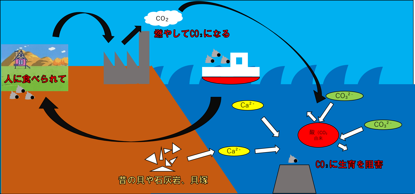 しかもサザエは燃やされると二酸化炭素を排出するのに、二酸化炭素による海洋酸性化で生命を脅かされていたのです。