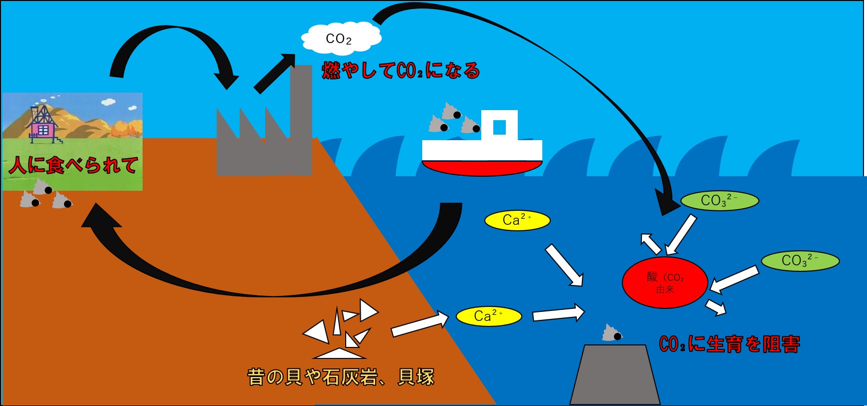 しかもサザエは燃やされると二酸化炭素を排出するのに、二酸化炭素による海洋酸性化で生命を脅かされていたのです。