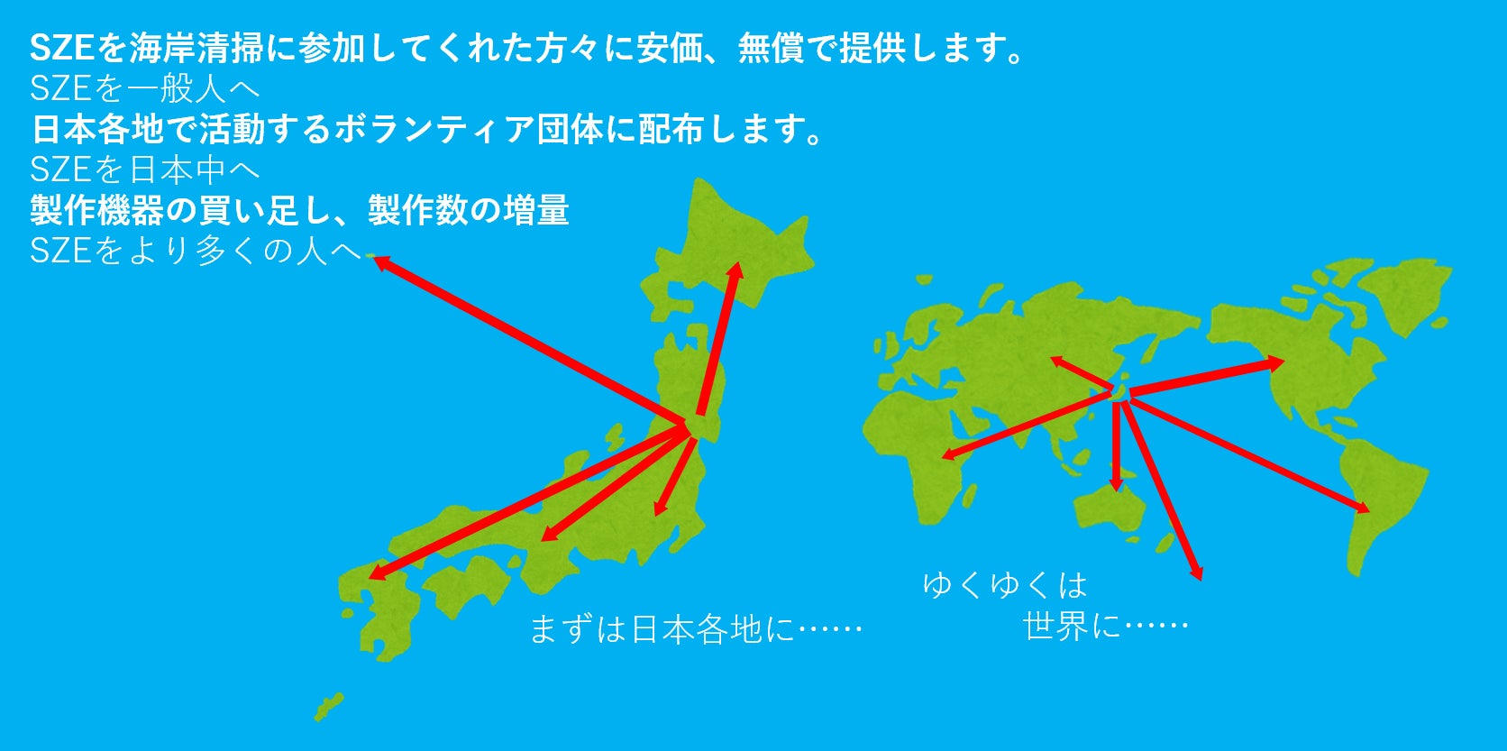 ・全国にSZEを配布するにあたる送料や梱包材料(プラスチックやビニールを最小限に抑えて送りたいと考えています。)