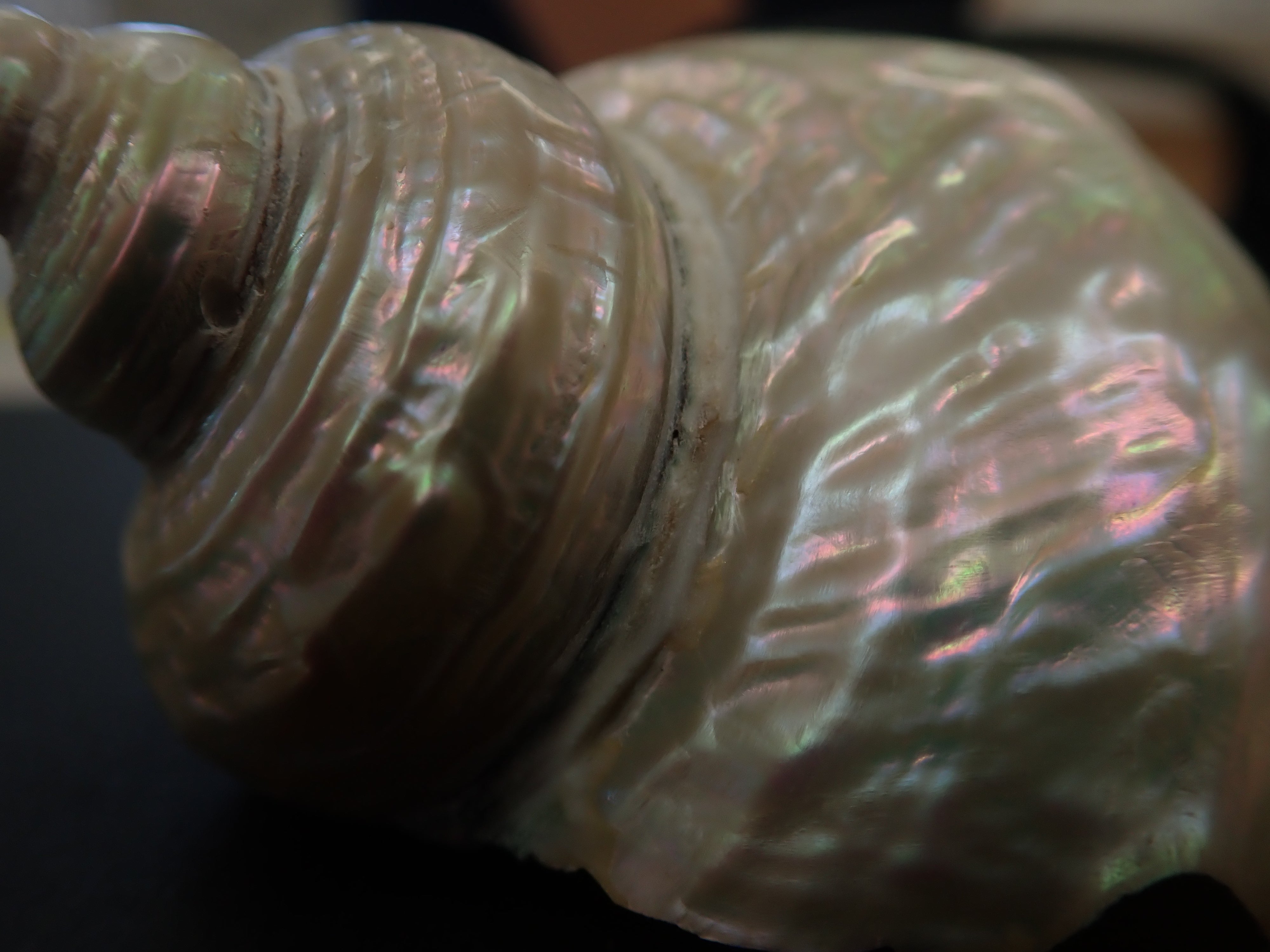 SZEは真珠と同じ、貝が作り出す真珠と同じ構造でできています。その構造が生み出す干渉という現象から、様々な色の光沢が生まれ、写真には写らない綺麗な発色が生まれるのです。