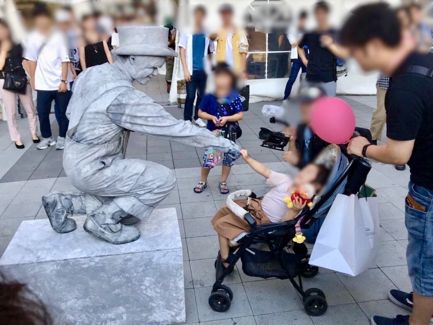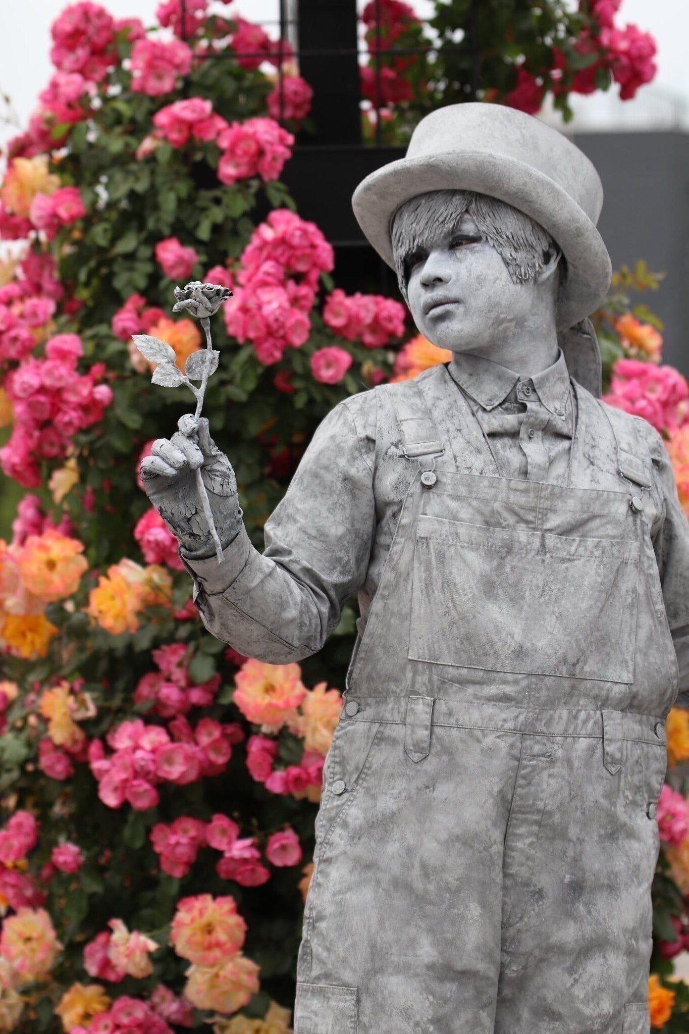 パフォーマンスの中には、石像や銅像に扮する者、マネキンやロボットになりきる者など様々な種類があり、基本的にはある一定のポーズでじっと止まって静止することが芸の一つです。