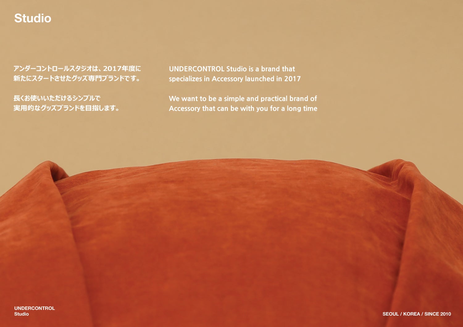 アンダーコントロールスタジオは全体的なスタイルのカラーを重視しています。ルックブックのモデルが着用した衣装とアンダーコントロールスタジオのグッズはすべてナチュラルで一貫性のあるスタイルになるよう心がけております。また、それによりお客様にブランドのコンセプトとスタイルが正確に伝わるよう願っております。