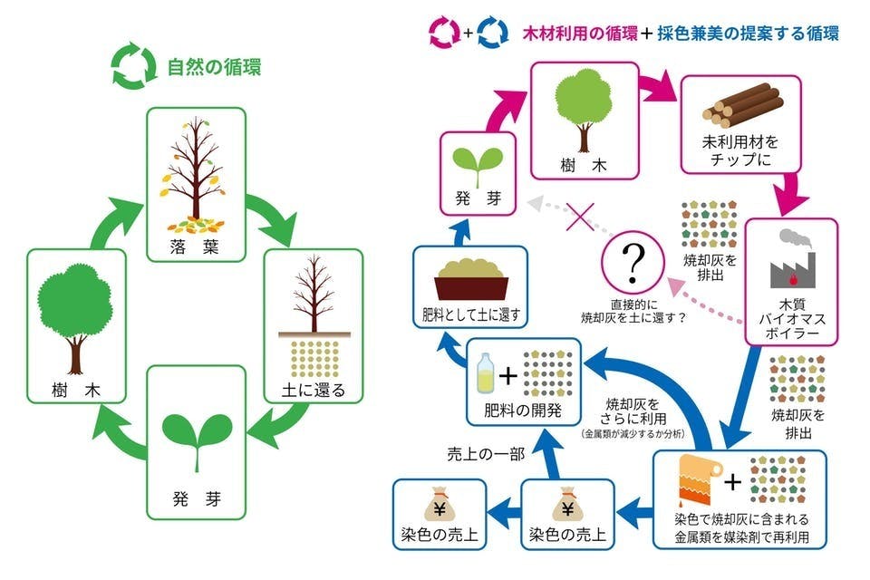 ピンクの矢印が木材利用で循環システムが完成していないことを表しています。