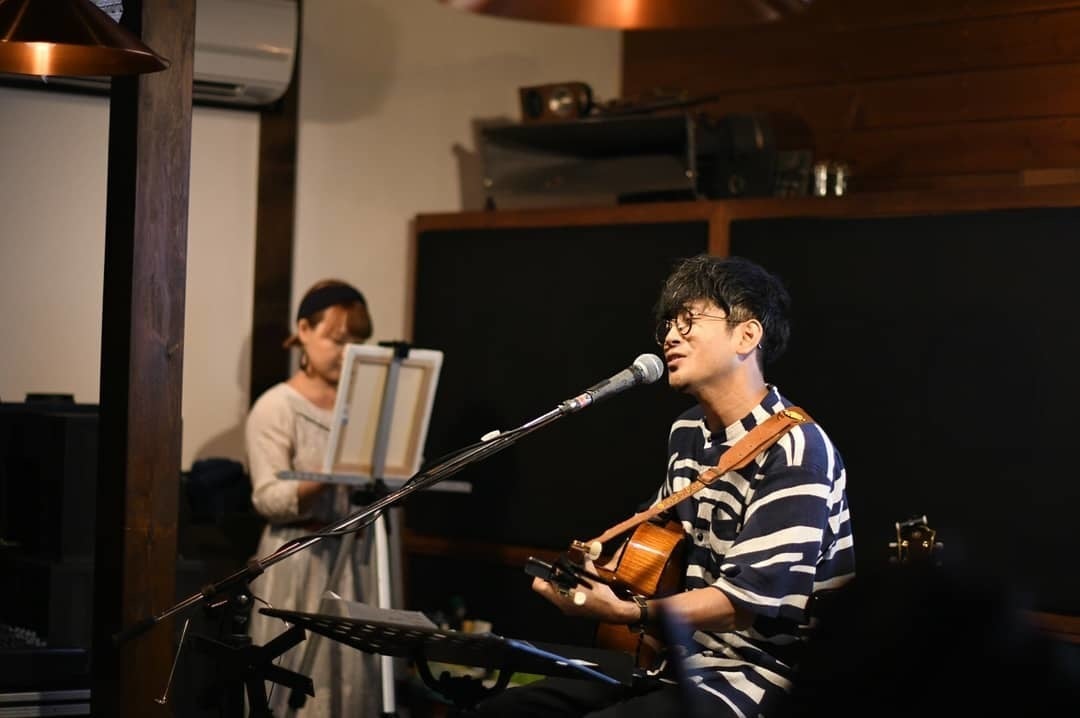 KEYAKIステージという、一番広いステージの背景フラッグの絵を描いてくださっている画家中川和寿さんの20周年絵画展ツアーと、本イベントのプレライブを掛け合わせて、