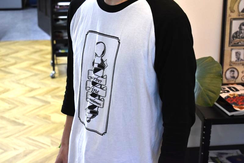 barber(床屋)の象徴であるサインポールをオールドスクールタッチにデザイン。クラシカルながらもサブカルを感じる一品に。