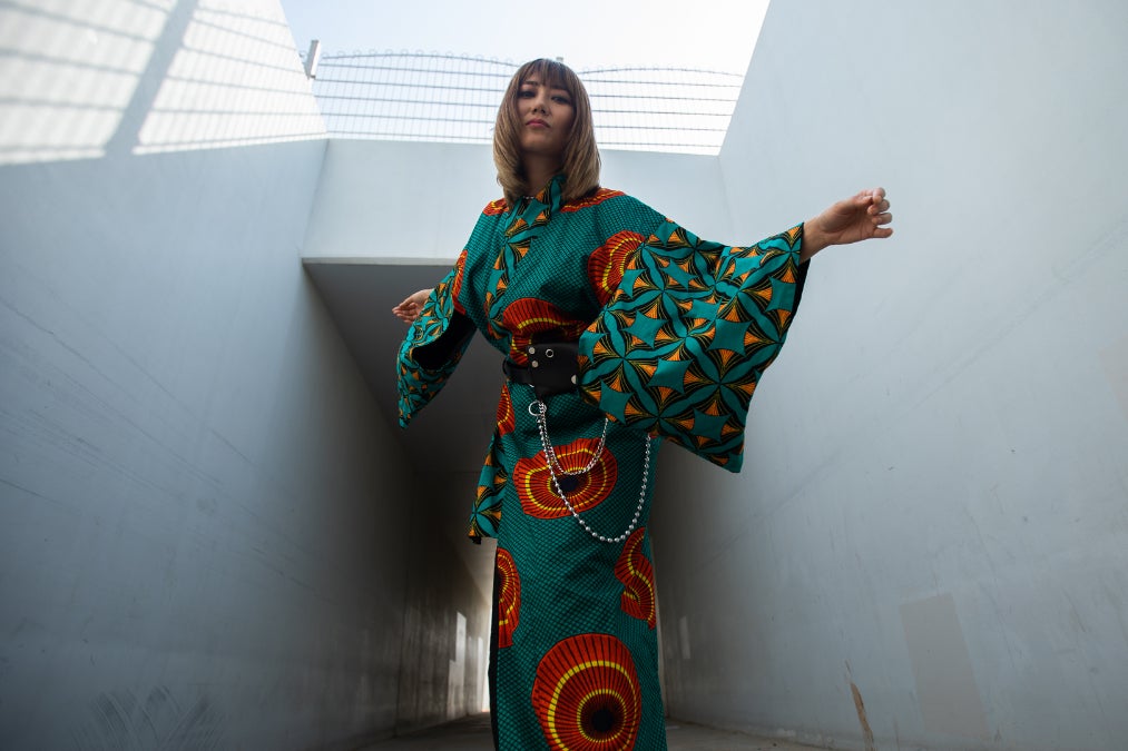 そこで、アフリカ人のカラフルでダイナミックな生き方に反映したようなワックス生地に出会い、日本の文化である浴衣とコラボレーションすることを考えました。