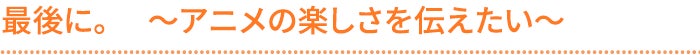 幼少時代よりアニメが大好きで、これまで、アニメの楽しさをもっと世に広めたいという野望を常に心の片隅に懐きながらやって来ました。
