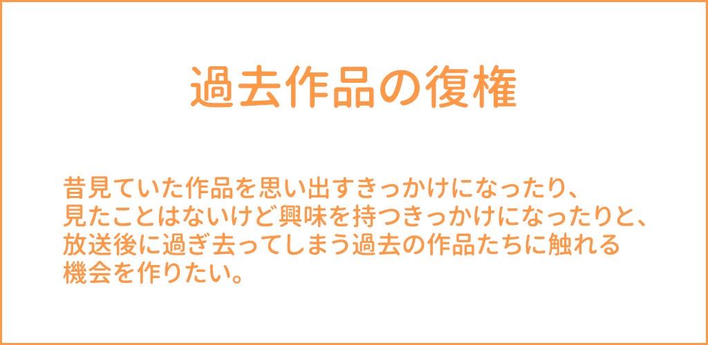 3つのコンセプトは、アニメや映画などの作品世界の新しい楽しみ方の提案です。