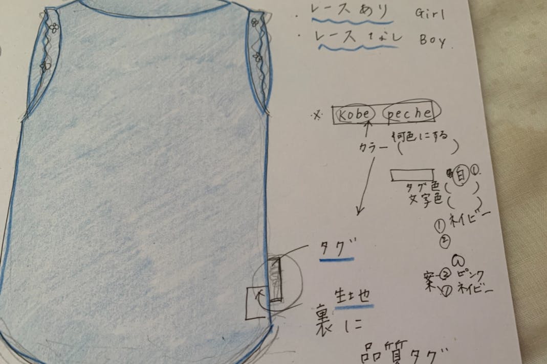 神戸カラーや岡山という私に縁のある地域からイメージできるカラーを使い、肌ざわりのよい、洋服作りをしていきます。