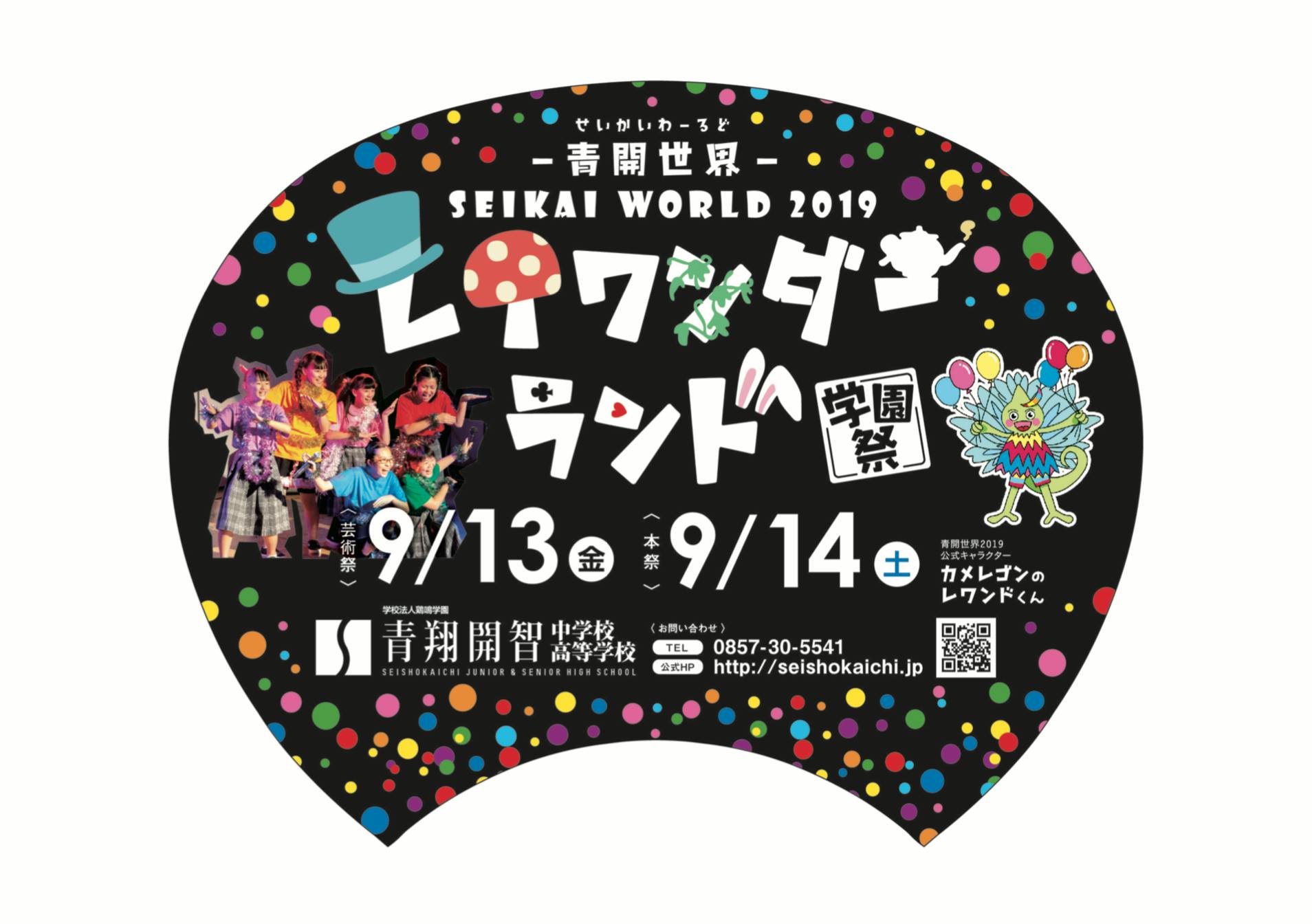 今年度の学園祭は、光線という意味を持つ「ray」と異世界という意味の「wonderland」、「令和」という新しい時代を掛け合わせ、『レイワンダーランド』をテーマにして学園祭をつくっていきます。一人一人が自分の色を存分に出して光り輝き、魔法の使えるワンダーランドであらゆることに挑戦して欲しいという意味を込めてテーマを設定しました。生徒が学園祭を楽しむことも大切ですが、普段お世話になっている地域の方に楽しんでいただくことも大切にしています。 毎年、テーマに合ったキャラクターを生徒が作製。今年は『レワンドくん』。青開世界2019twitter