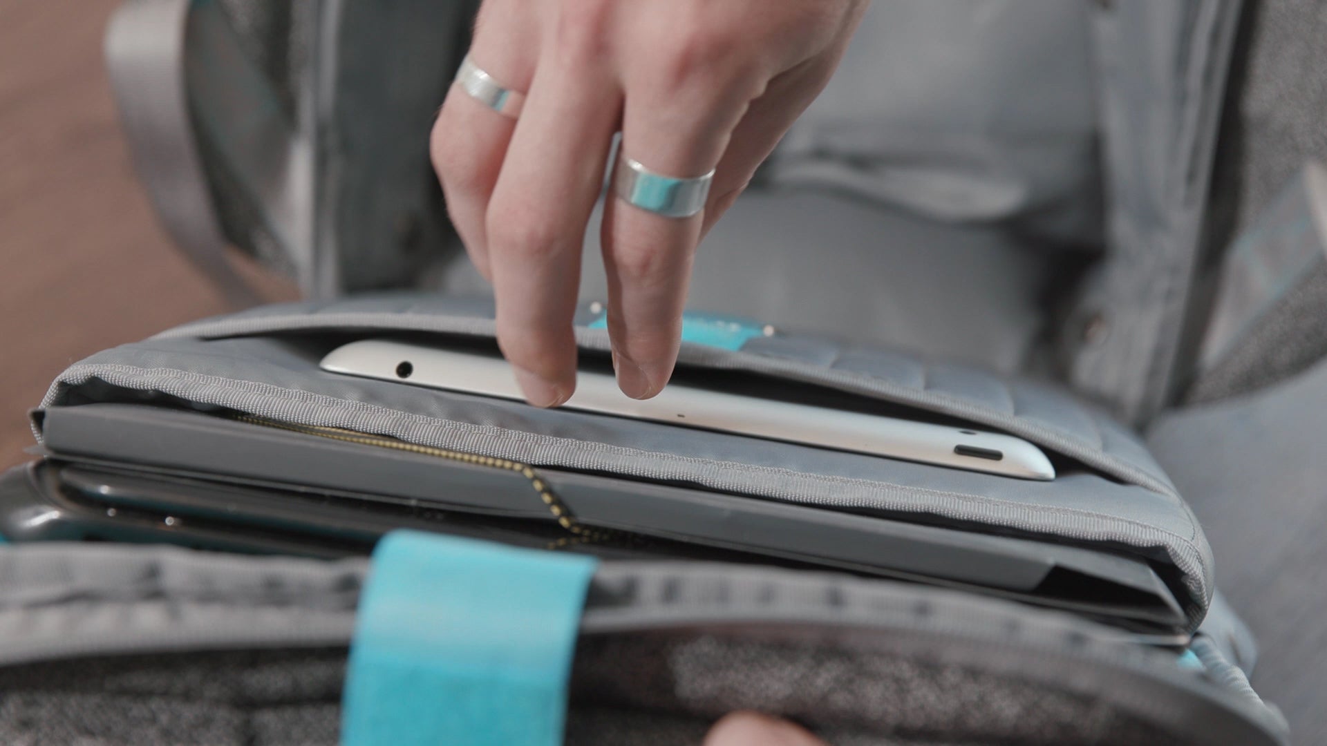 ストラップ部分に装備されたクイックアクセス・ポケットを使えば、改札もスマートに通り抜けられます。