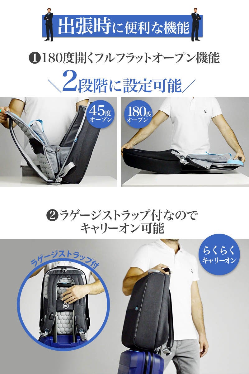 ③軽量900g、ICカードポケット、180度フルフラットオープンなど通勤や旅行に便利な機能が充実