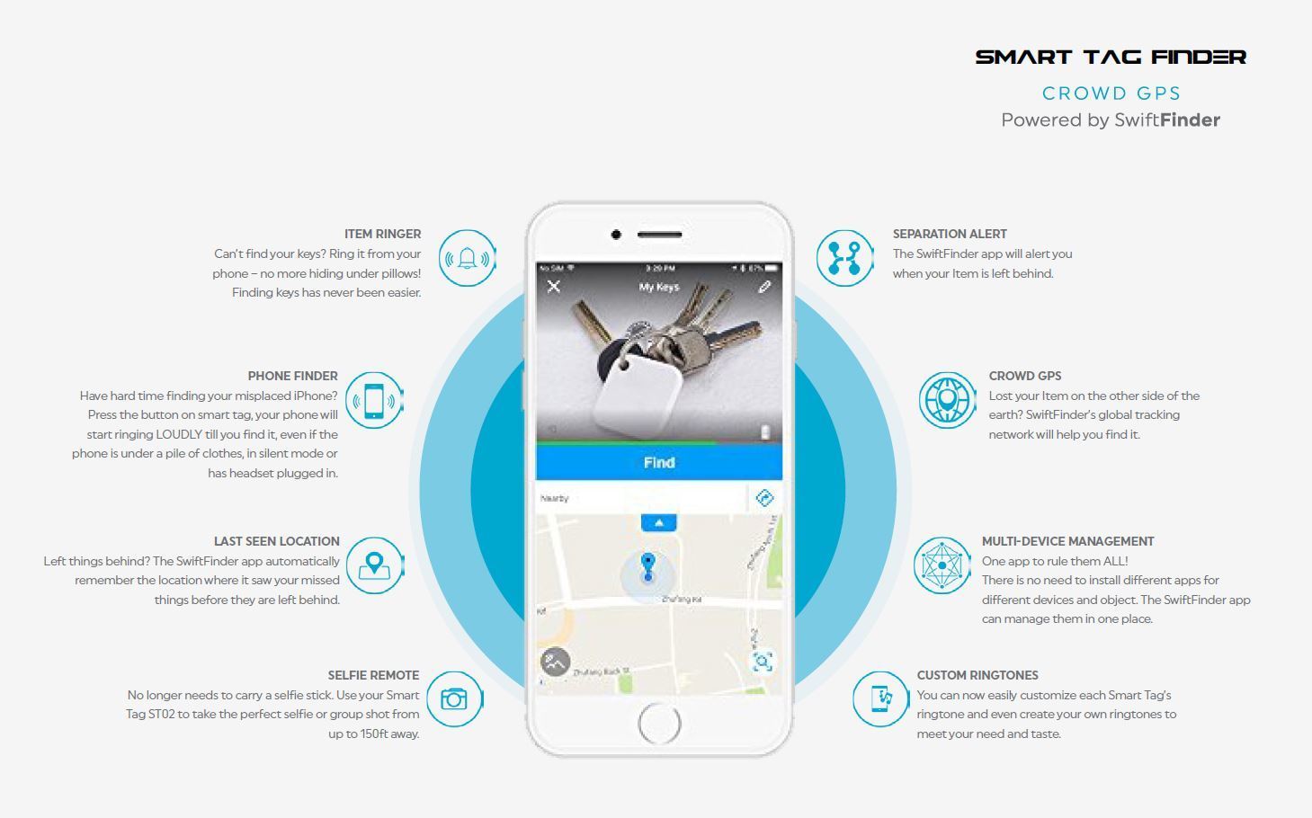 本製品に付属のトラッカーは、BGベルリンがSwift Finder社とのコラボレーションで実現した製品です。