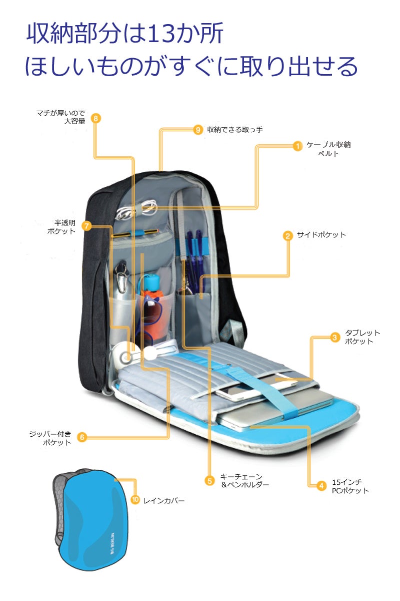 前作の機能はそのままで、さらに新機能が追加された全部入りのリュックです。