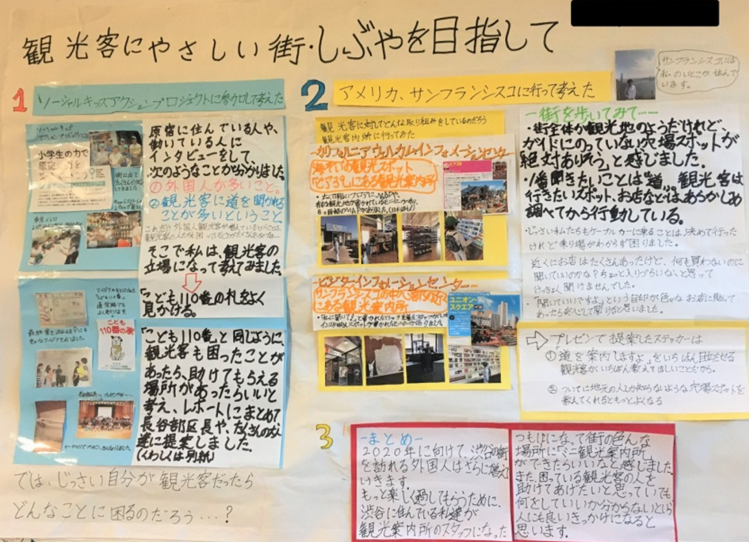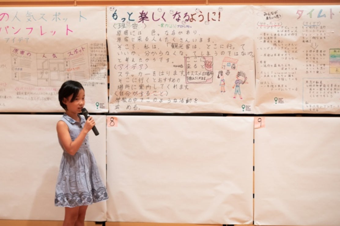 私は小学5年生のはなのです。私が住んでいる東京の渋谷区では外国人のお客様をたくさん見かけます。4年生の時にSKAP(ソーシャルキッズアクションプロジェクト)に参加し、東京メトロやラフォーレ原宿のWALLなどでインタビューをしました。渋谷を訪れる人たちがもっと楽しくなるように!「ミニ観光案内所」を街中にたくさん作りたいです。