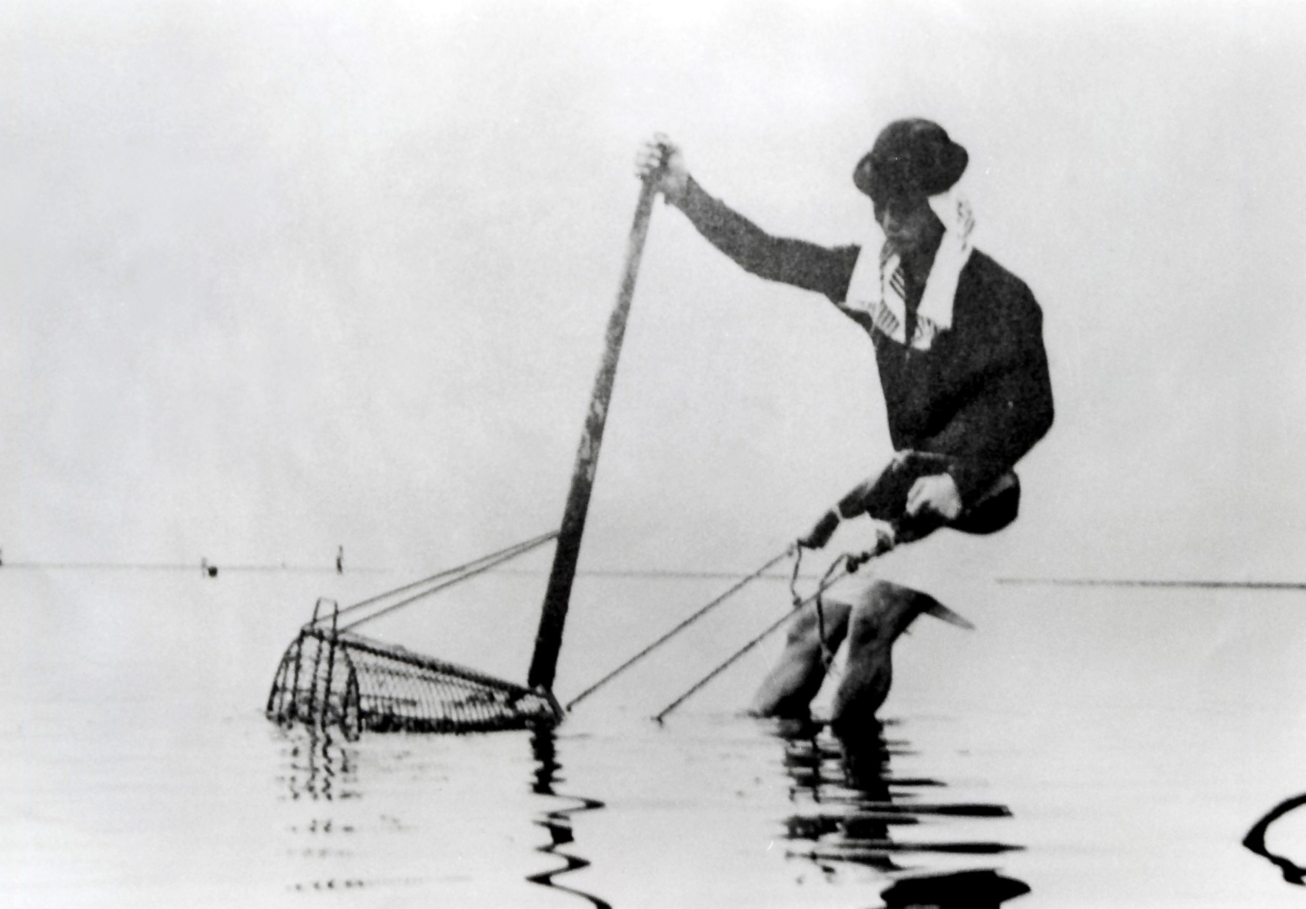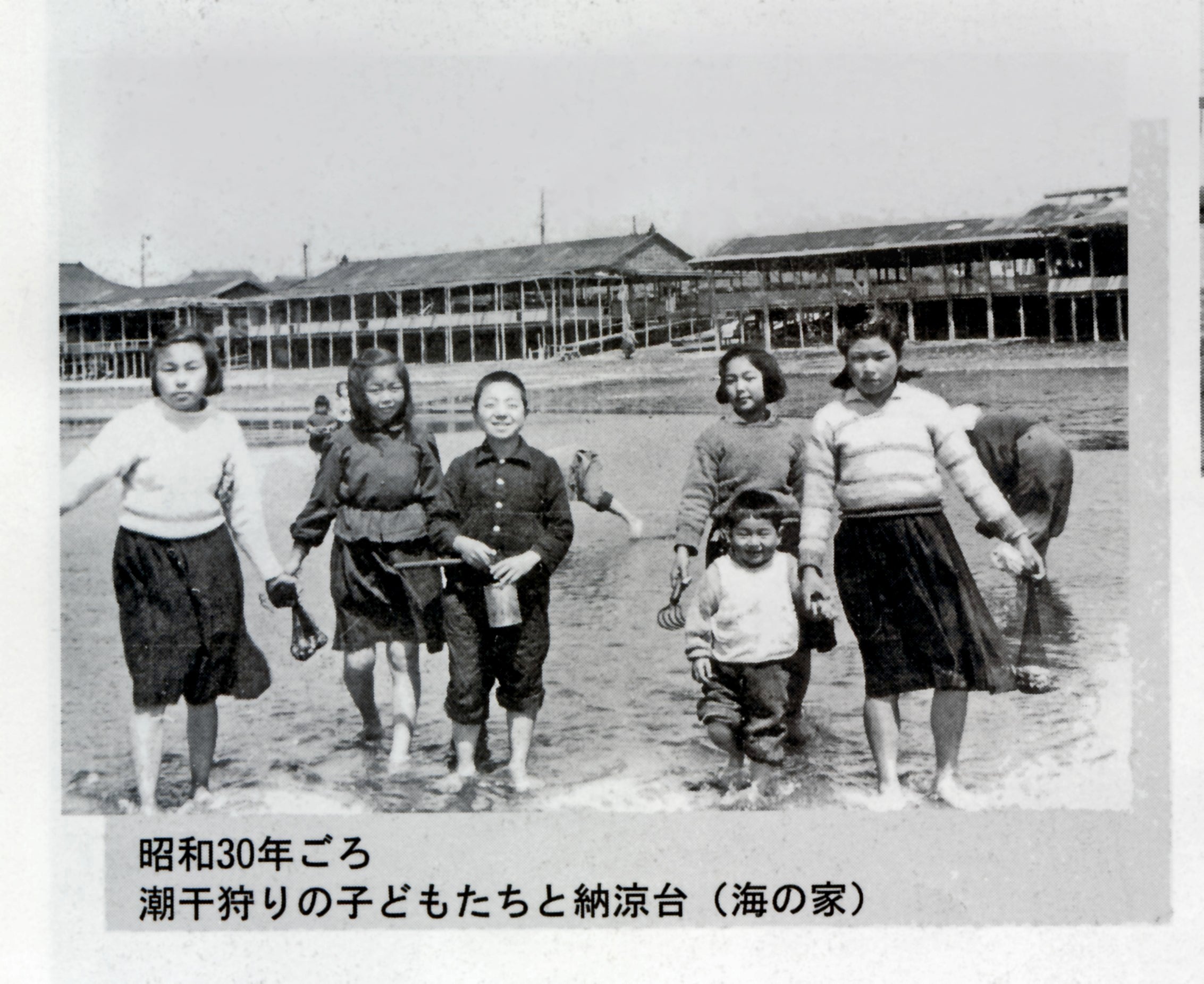 なお、稲毛の歴史については祭の期間に京成稲毛駅構内に掲出する「いなげレトロ写真展」で説明しています。下の写真は『稲毛小学校百周年記念誌』からの引用で、夜灯漁ではありませんが、稲毛に海が広がっていたころの様子が分かります。