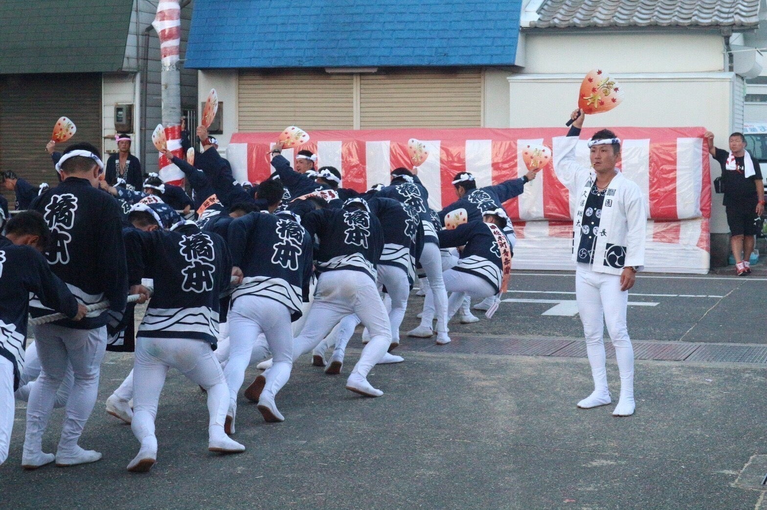 綱先は曳き綱がたるまないように綱を張り、綱中は進行方向に全力で綱を曳く。