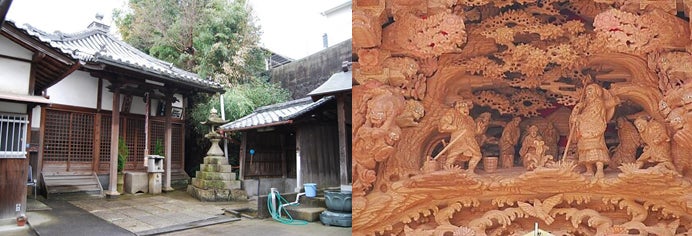 橋本町のだんじりには、橋本町にゆかりのある場所や戦国武将が彫刻されています。