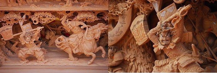 だんじりには各町ごとに異なった彫刻がされており、『動く美術品』と称されています。