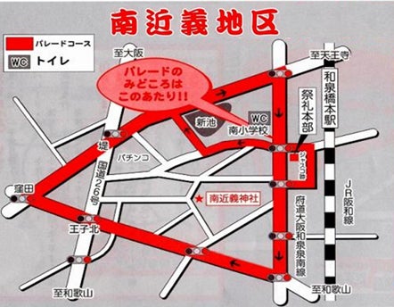 下記、コースと日程で曳行をおこなっていますので、ぜひお越しください。