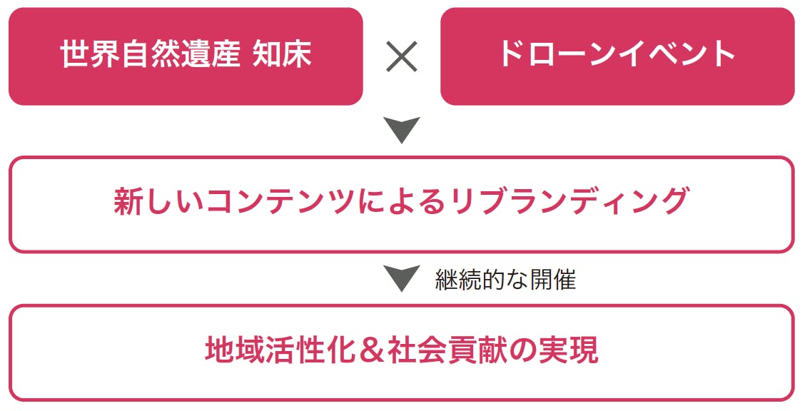 本イベントは、1度だけでなく継続的に開催していくことで、新しいエンタメコンテンツとして地域に定着し、知床&ドローンという新たな魅力で地元地域の経済発展や産業分野での技術革新、さらにはSTEM教育の実践による未来に活躍できる人材の育成に寄与することを目的としています。