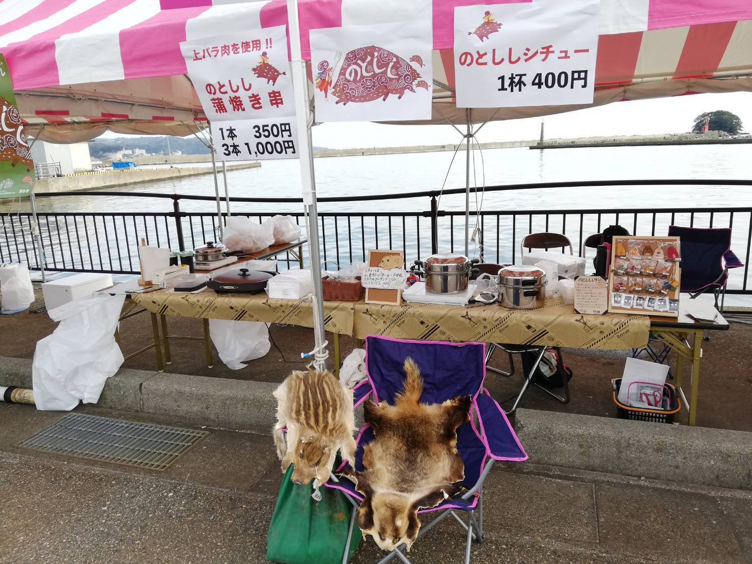 2019/11/15 10:2811月3日、北陸は肌寒くなっていましたが氷見漁港は少し日差しが入り、気持ちの良い日になりました。氷見市は「食」への探求心が強い街で氷見牛、氷見ワイン、氷見の寒ブリ、魚の革細工、氷見うどん、氷見カレー、氷見ラーメン・・もう素晴らしい食の数々なのです。その中で、唯一、石川県羽咋市からイノシシ料理を出店させて頂いており今回で3年目でした。富山県氷見市は、石川県羽咋市の隣の街なので氷見市のイノシシを捕獲させて頂いたこともあり、そのご縁が続いています。毎年、大盛況で9時半から始まり14時には、ほとんどの店が売り切れるほどのイベントです。年々、お客さんも増えており今年は朝早くから列ができ、氷見牛串焼きは昼前に売り切れていました。私達も、ありがたいことに上を向く暇がないほど忙しかったです。今回も10月の金沢でのイベント同様、すね肉のシチューとバラ肉かば焼き串を販売致しました。バラ肉は、ネギ・ショウガといっしょに煮込みます。煮込むことでほろっと柔らかくなり、とても美味しい串が作れるのです。今回は700本以上用意し、14時過ぎに完売致しました。昨年来て頂いたお客様も、今年もお会いすることができたりイベントは素敵な出会いの連続。今年もとても楽しかったです(*^-^*)少しですが革製品も置かせて頂きましたが、昨年より多くの方に購入して頂き興味をもって頂き、とても嬉しかったです。個人的には氷見市の地域おこし協力隊の魚の革製品のワークがめちゃくちゃ気になりました・・忙しくて覗きに行けなくて後悔( ゚Д゚)他の地域の方の活動がとても勉強になります。色々学ばせて頂きました。ありがとうございました(_ _)!! もっと見る
