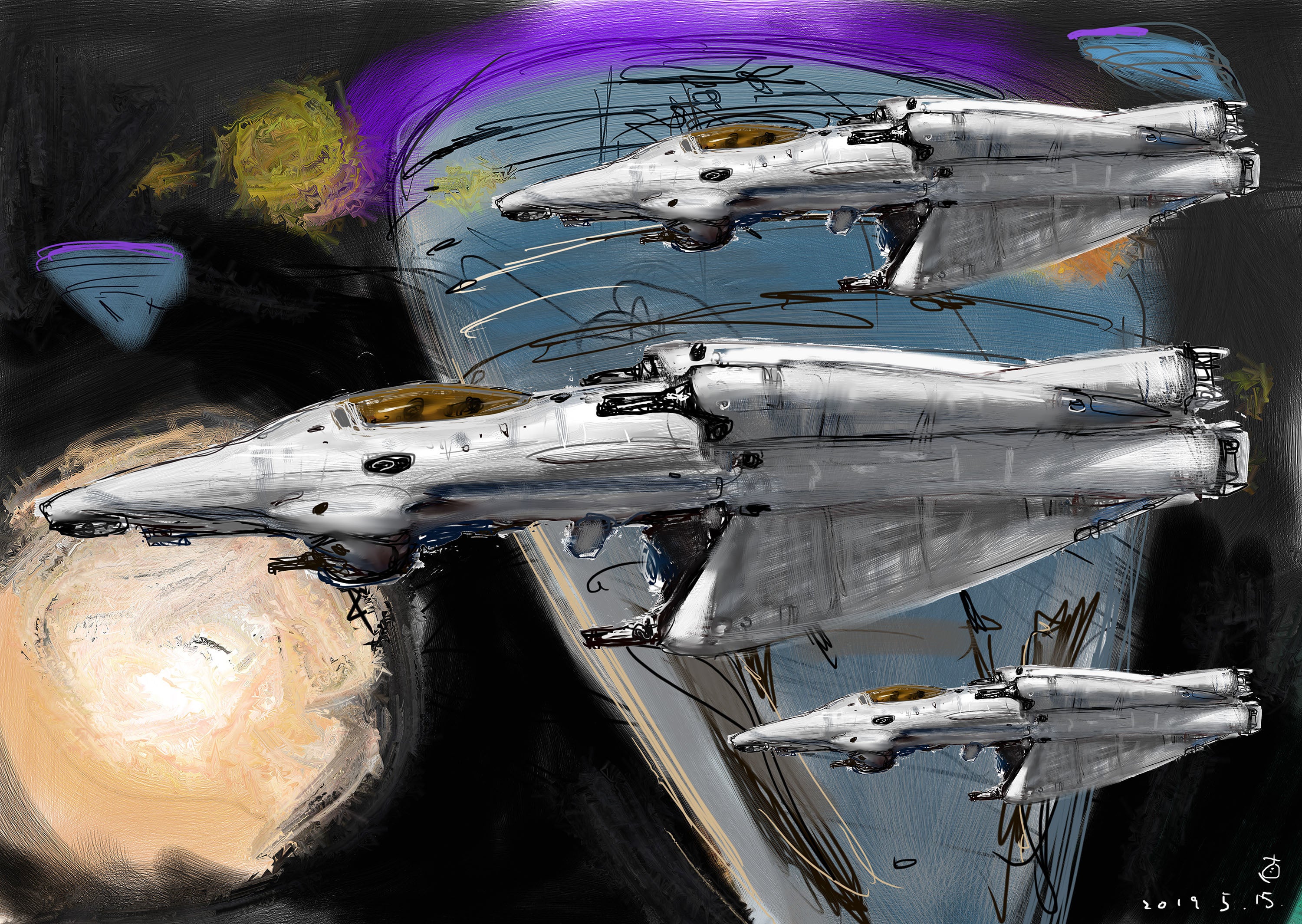 宇宙戦闘機の機体のペイントや部隊マークにお名前を配置、