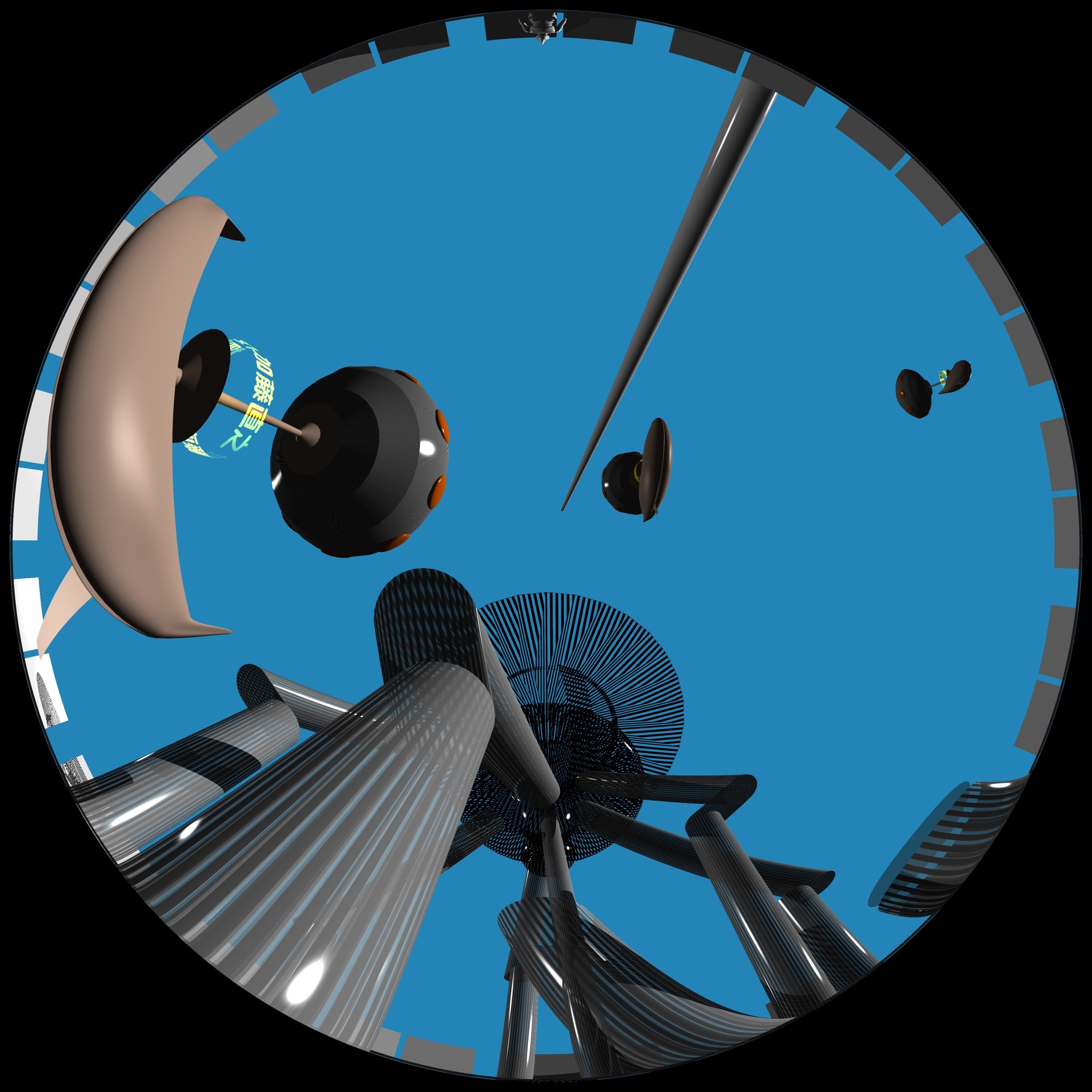 絵をそのままドームマスター形式イラストに仕上げるのは無理っぽかったので、3GCGアプリ『Shade3D』を使い、空間そのものに配置して検証してみました。